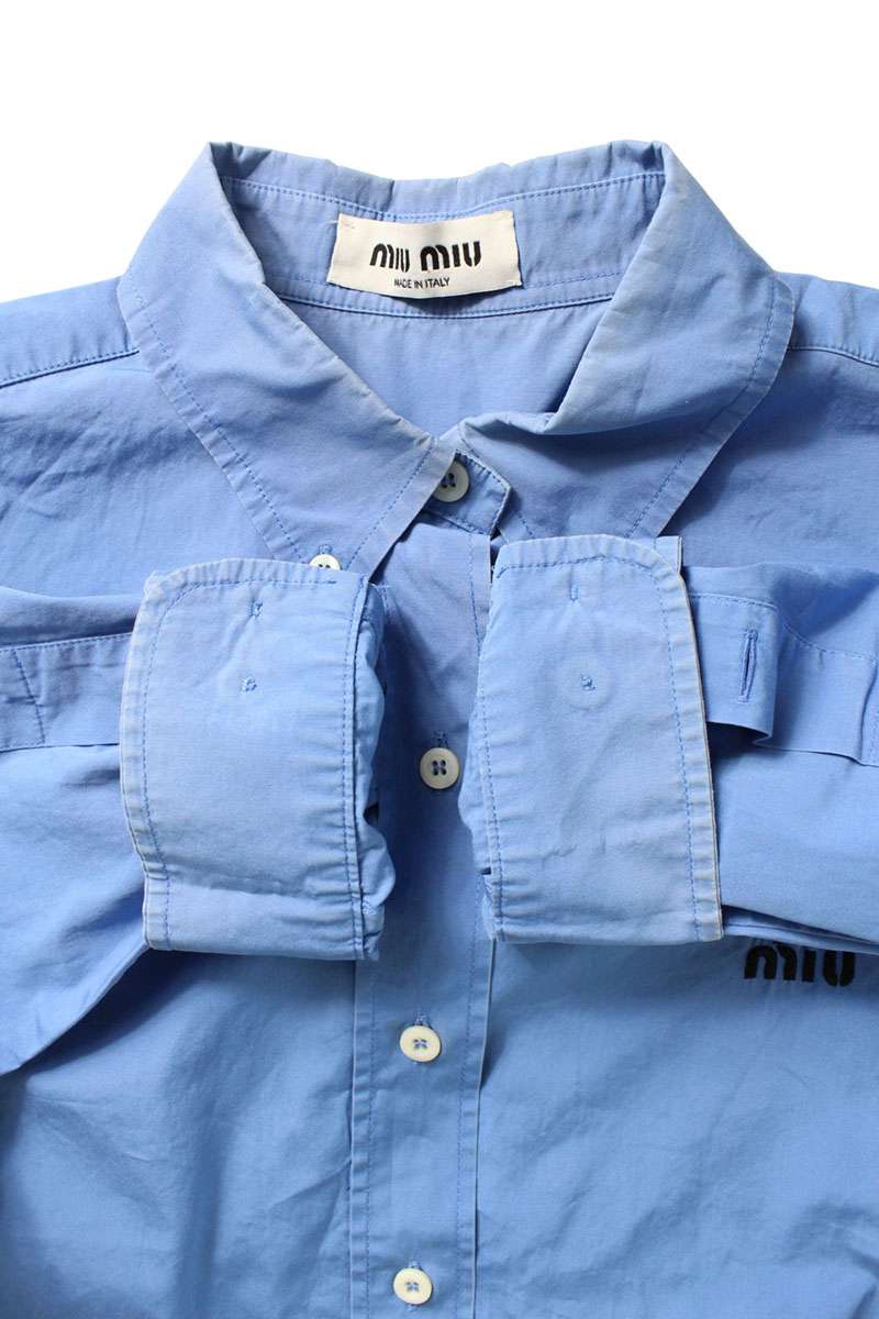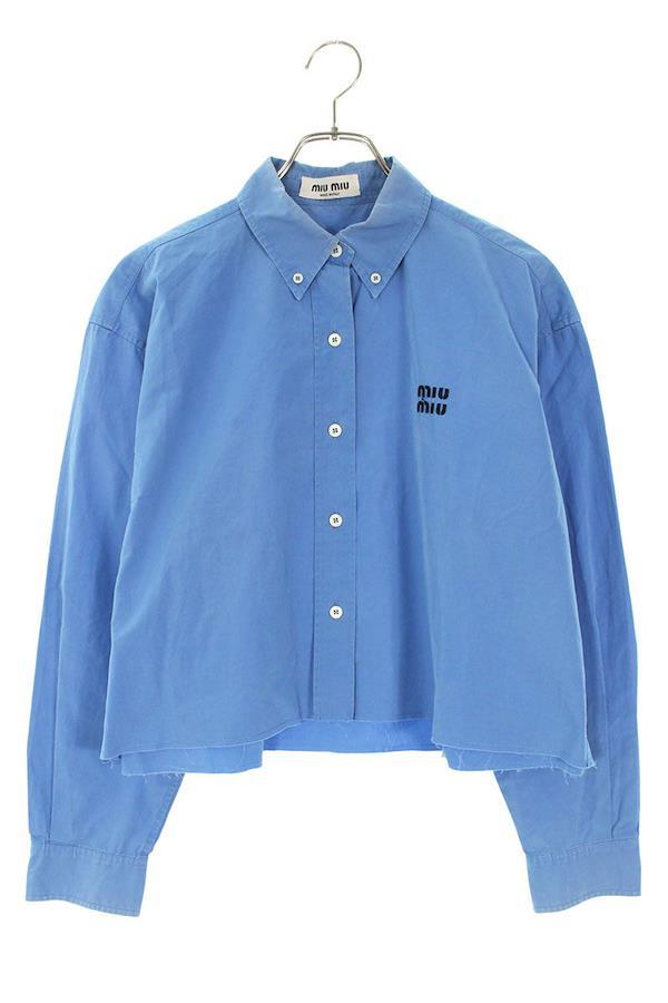 Miu Miu <br> Size: 38 MK1659 Logo Embroidered Cropped Long Sleeve Shirt (Blue) [302152] [SB01] [Women's] [Pre-owned] bb356#rinkan*B