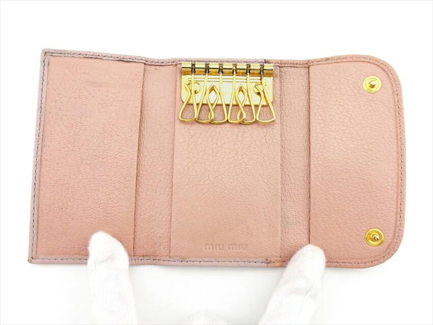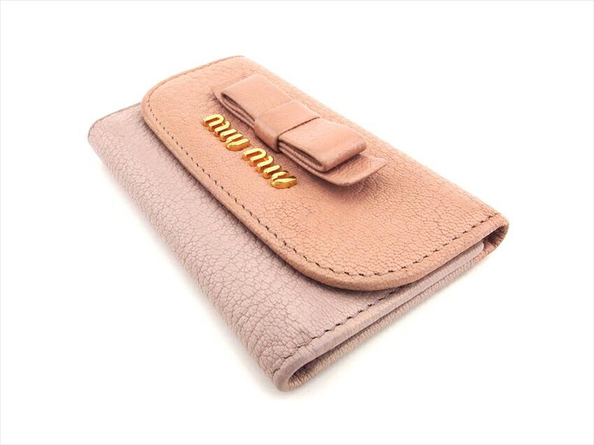 ■管理番号:D2505■ブランド:ミュウミュウ MIUMIU■商品名:リボン■型番:5PG222■表記カラー:ピンク ゴールド■カラー:ピンク ゴールド■形:キーケース■性別:レディース■サイズ:■仕様:シリアル:178■備考:[開口部]ボタンホック[内側]キーフック×6両開きポケット×1オープンポケット×2幅:約10.7cm高さ:約6.5cmマチ:約1.8cm■付属品:ギャランティカード保存箱(スレ 汚れ シミ あり)※写真・説明段に表記されている付属品以外は付属しておりません。■状態ランク:【8】美品 ※多少の傷、汚れがあるが非常に良好な美品