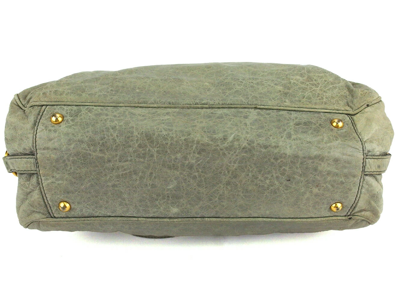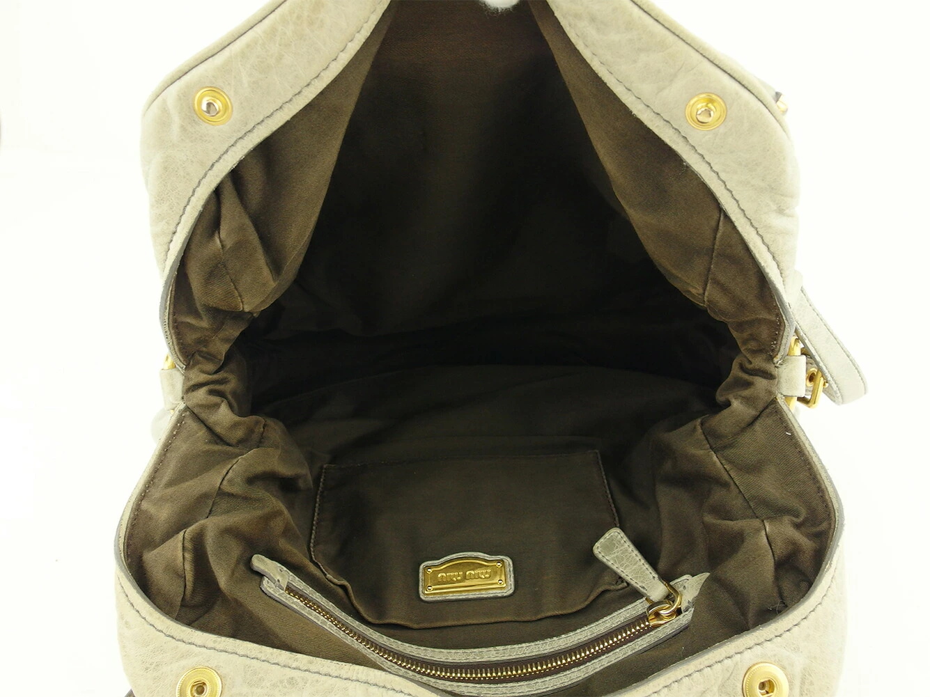 [24% OFF Coupon] Miu Miu Shoulder Bag with Logo and Gathered Trim, Gray, Green, and Gold, Men's, Pre-Owned
