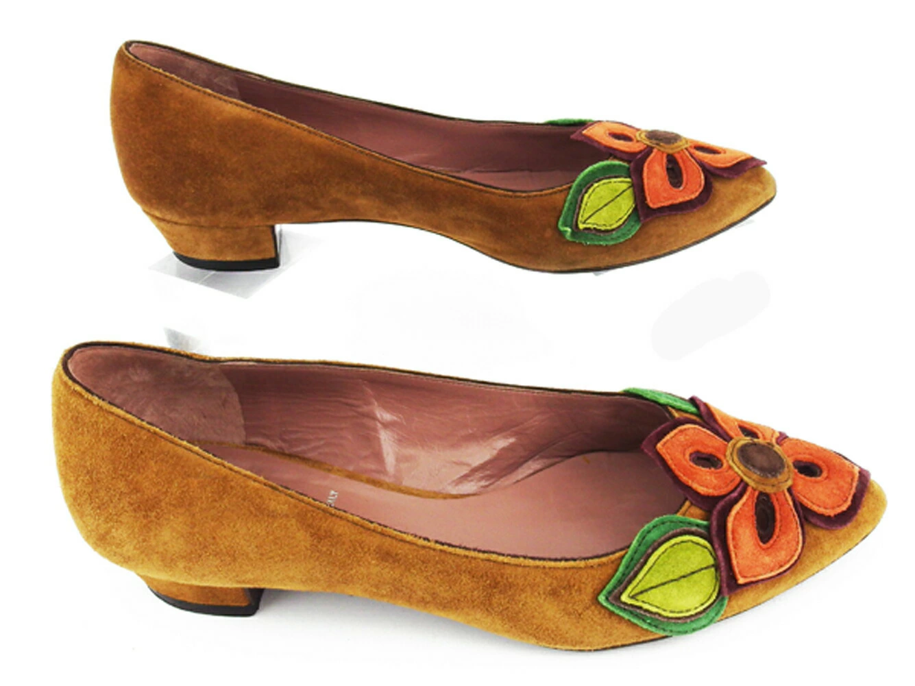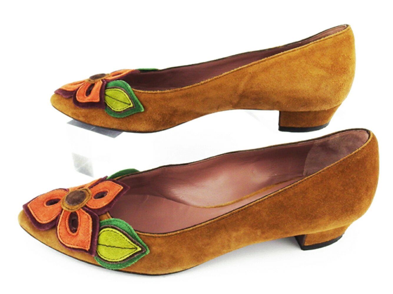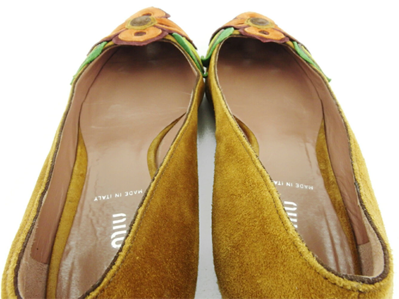 [24% OFF Coupon] Miu Miu Pumps, Flower Motif #36, Pointed Toe, Brown, Orange, Green, Men's, Pre-owned