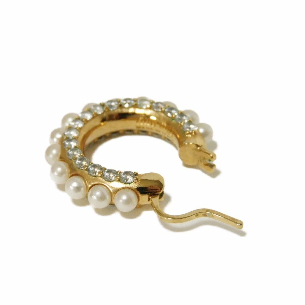 | MIUMIU ミュウミュウ Mロゴ パール クリスタル アシンメトリー フープ ピアス |