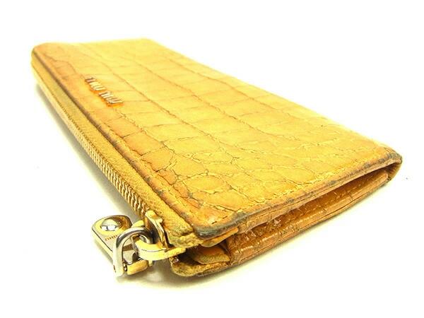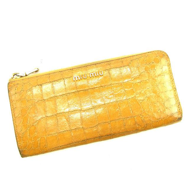 [24% OFF Coupon] Miu Miu Long Wallet, Crocodile-look, Yellow and Gold, Women's, Pre-owned