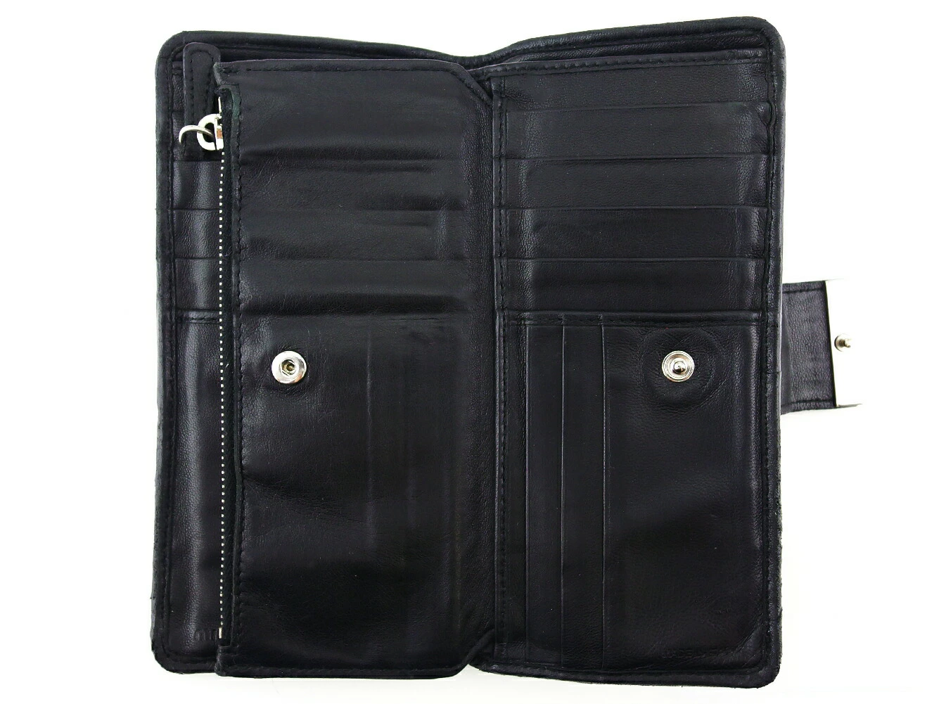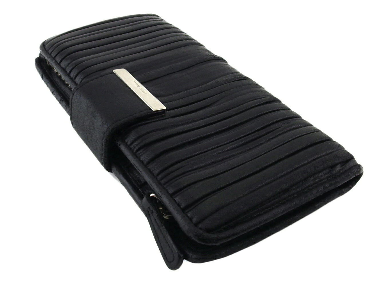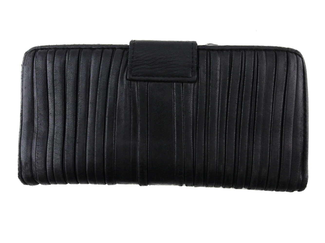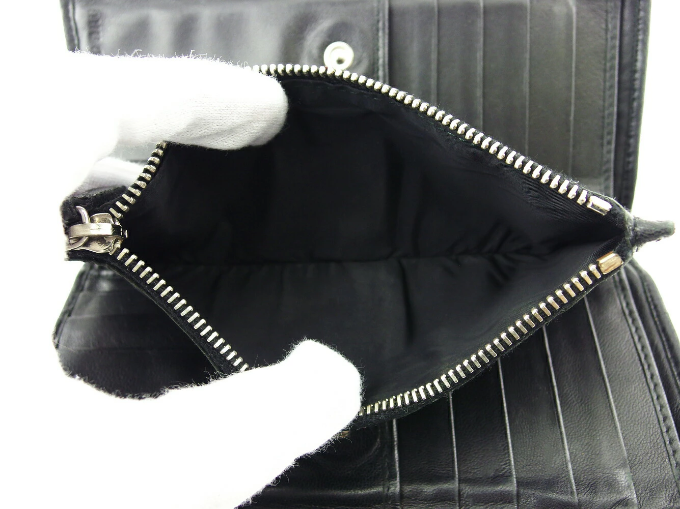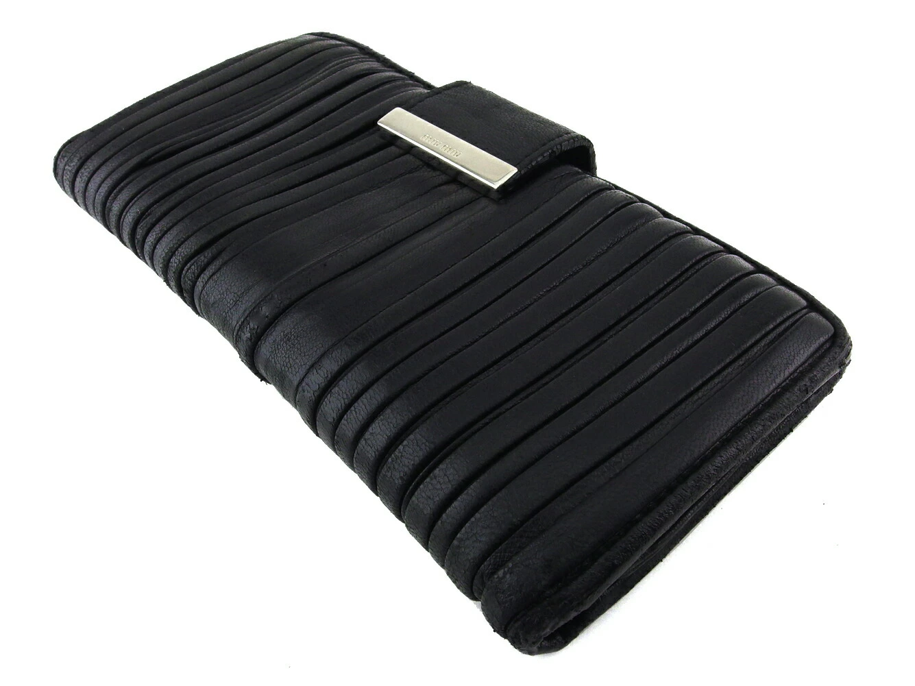 [24% OFF Coupon] Miu Miu Pleated Long Wallet with Logo Plate, Black and Silver, Women's, Pre-owned