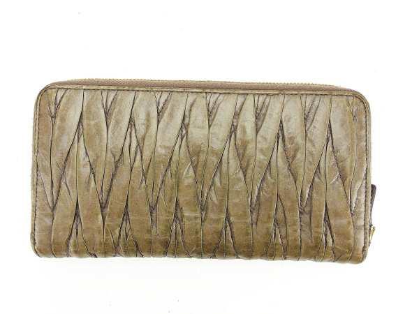 [24% OFF Coupon] Miu Miu Matelasse Khaki x Gold Long Wallet, Women's, Pre-owned