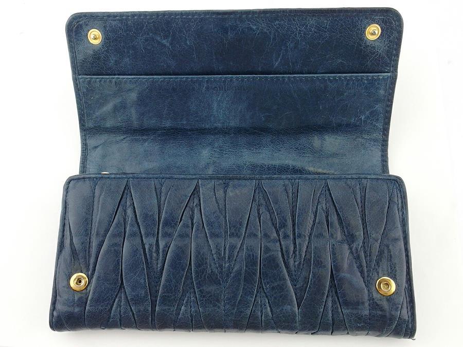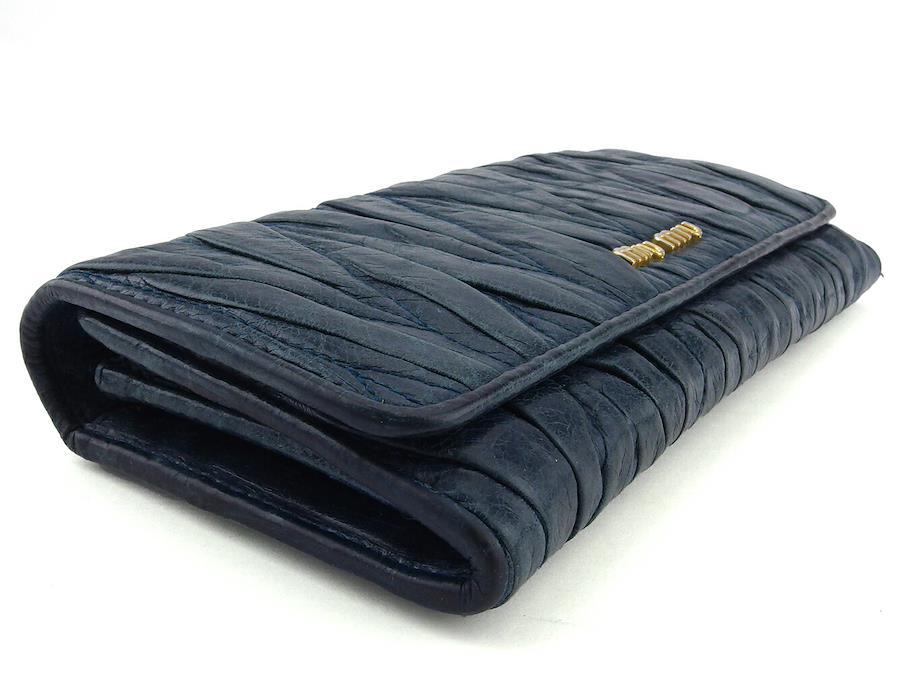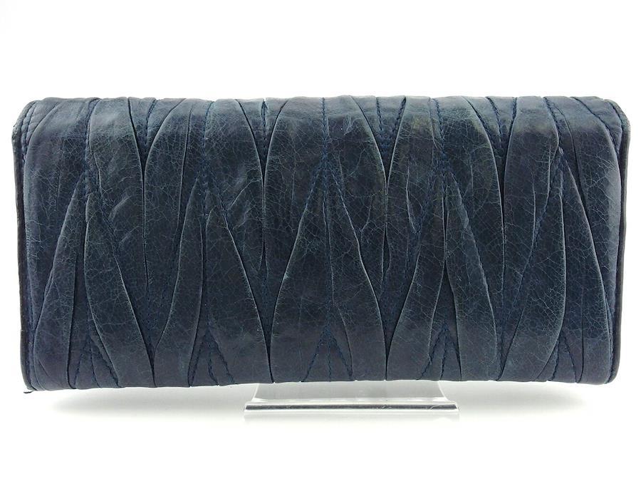 ■管理番号:E1540■ブランド:ミュウミュウ MIUMIU■商品名:マテラッセ■表記カラー:ネイビー ゴールド■カラー:ネイビー ゴールド■形:長財布■性別:レディース■サイズ:■仕様:シリアル:194■備考:[開口部]ボタンホック[内側]マチ付き札入れ×2ファスナー式小銭入れ×1カード入れ×12オープンポケット×2幅:約19.5cm高さ:約10cmマチ:約2.5cm■付属品:なし※写真・説明段に表記されている付属品以外は付属しておりません。■状態ランク:【6】中古品 ※通常の使用感があるお品物