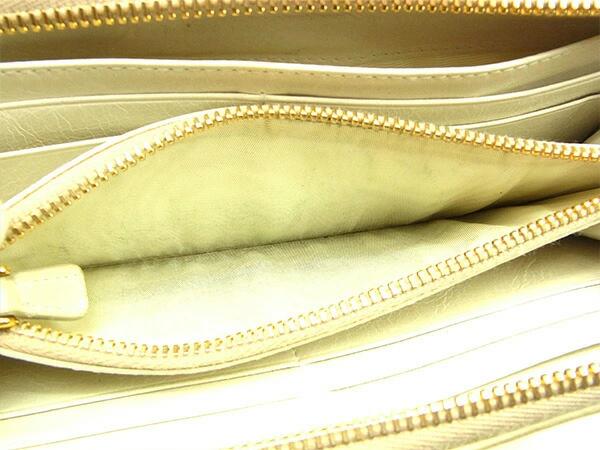 | コンディション | 全体の状態詳細:まだまだ十分にお使いいただけます。スレ 汚れ 角スレ 変色(外側) 黒ずみ(小銭入れ) 金具ハゲ パイピングヒビ割れ(ファスナープル革) など使用感があります。 |