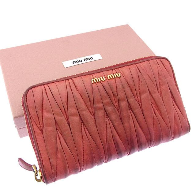 [24% OFF Coupon] Miu Miu Matelasse Long Wallet with Logo, Pink and Gold, Pre-owned, Women's