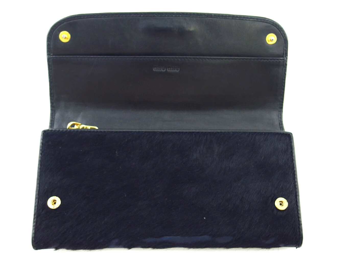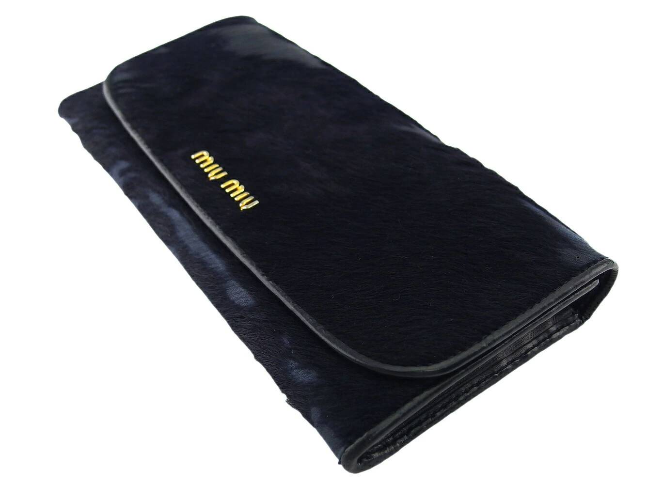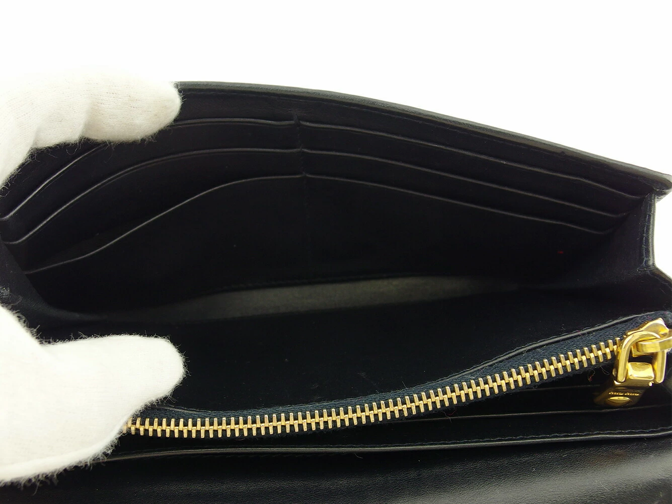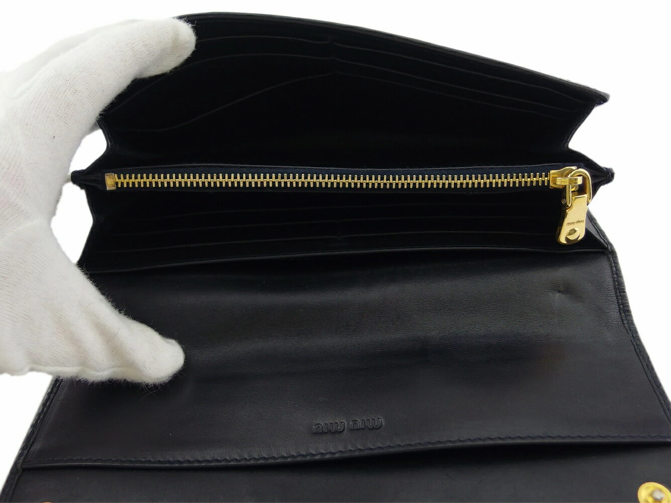 [24% OFF Coupon] Miu Miu Long Wallet with Logo, Navy, Black, and Gold, Women's, Pre-owned