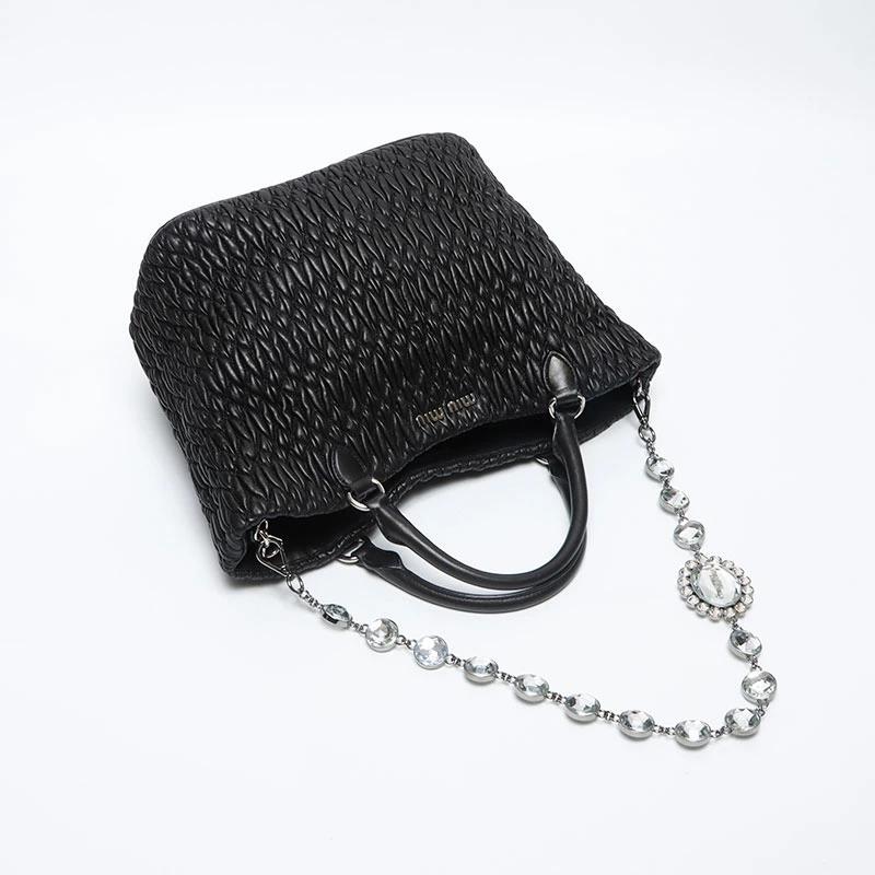 新品~未使用品 新品同様品または試着程度の使用感があります。 使用感の少ない状態の良い中古品になります。 使用感があるものの傷や汚れが少なく、比較的状態の良い商品。 傷や汚れがあり、使用感のある商品。 Miu Miu/ミュウ ミュウ ショルダーバッグ ブラック ストーン一部違う モニターの発色によって実際の物と色が異なる場合がございます。
