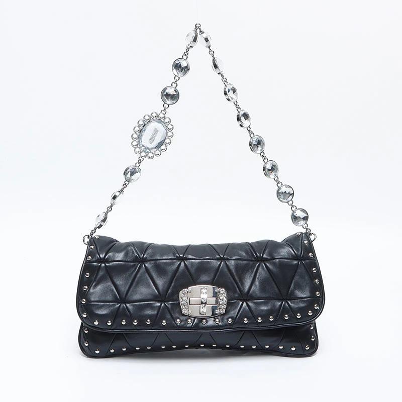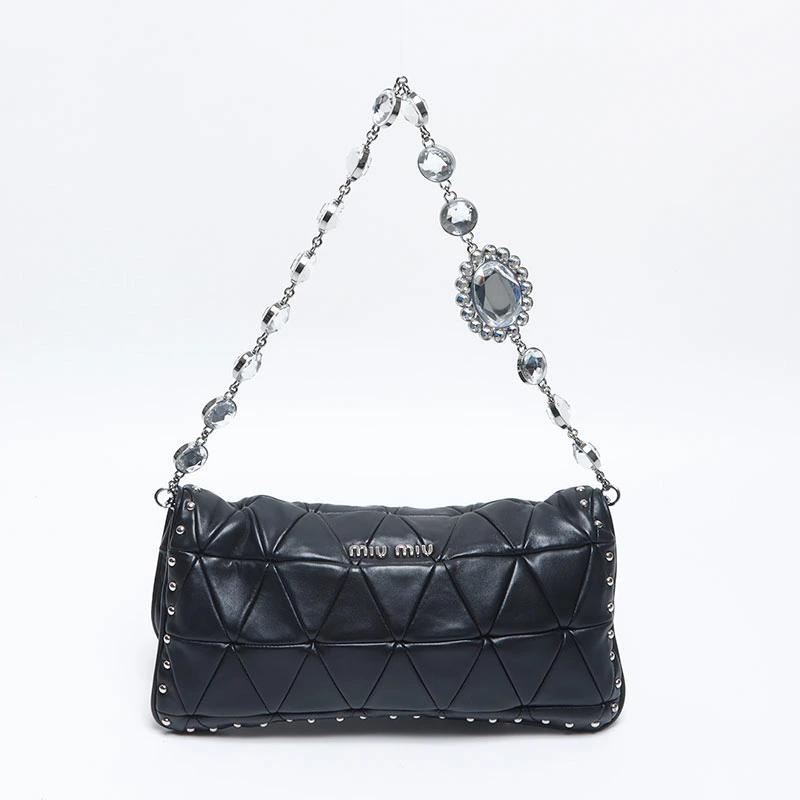 新品~未使用品 新品同様品または試着程度の使用感があります。 使用感の少ない状態の良い中古品になります。 使用感があるものの傷や汚れが少なく、比較的状態の良い商品。 傷や汚れがあり、使用感のある商品。 Miu Miu/ミュウ ミュウ ショルダーバッグ ブラック モニターの発色によって実際の物と色が異なる場合がございます。
