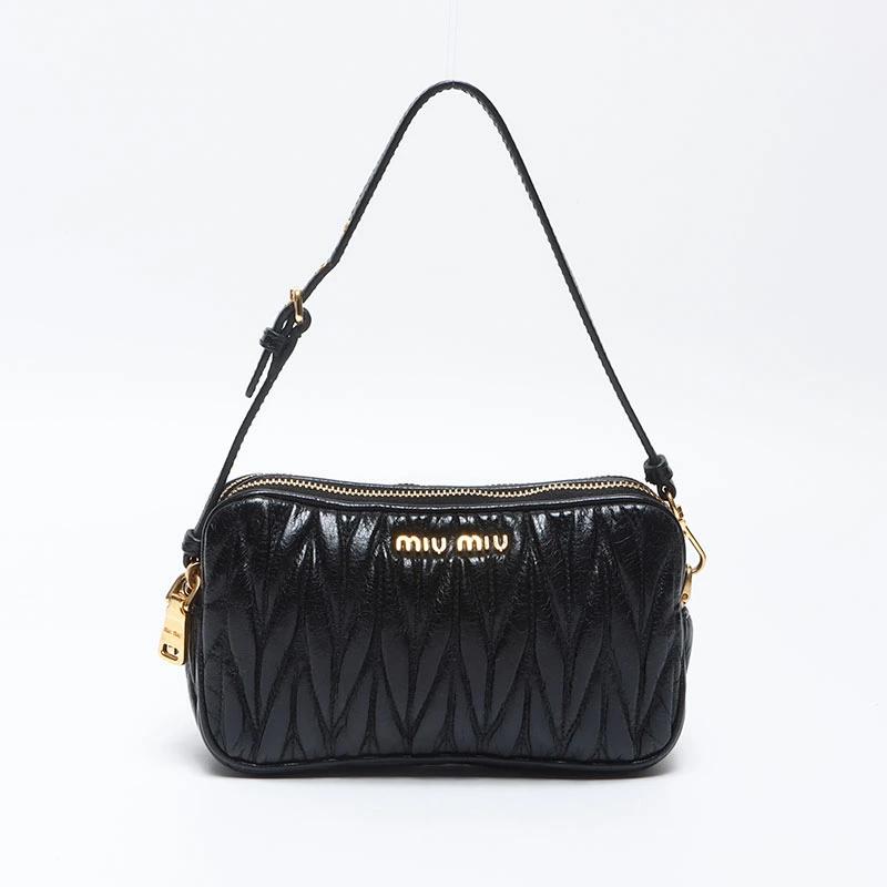 新品~未使用品 新品同様品または試着程度の使用感があります。 使用感の少ない状態の良い中古品になります。 使用感があるものの傷や汚れが少なく、比較的状態の良い商品。 傷や汚れがあり、使用感のある商品。 Miu Miu/ミュウ ミュウ ハンドバッグ ブラック モニターの発色によって実際の物と色が異なる場合がございます。