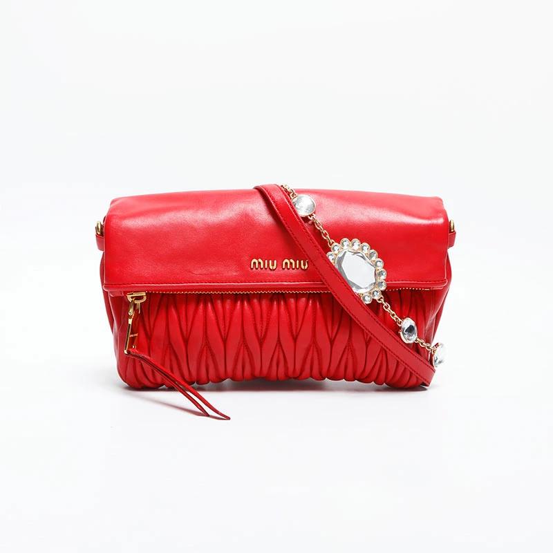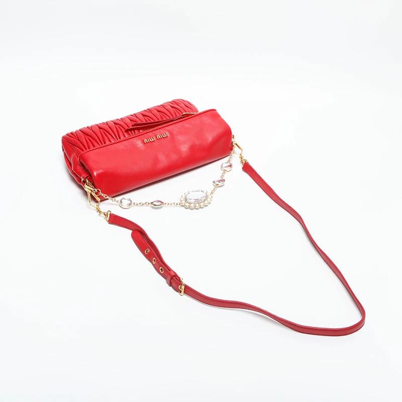 Pre-owned Miu Miu Matelassé Leather Shoulder Bag, Red, WS14929