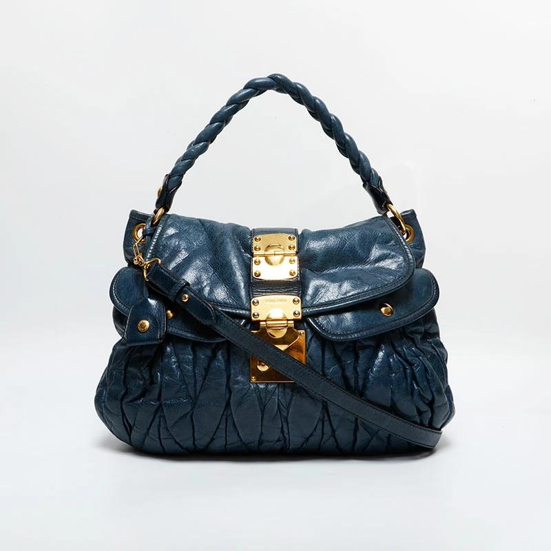 新品~未使用品 新品同様品または試着程度の使用感があります。 使用感の少ない状態の良い中古品になります。 使用感があるものの傷や汚れが少なく、比較的状態の良い商品。 傷や汚れがあり、使用感のある商品。 Miu Miu/ミュウ ミュウ ショルダーバッグ ブルー モニターの発色によって実際の物と色が異なる場合がございます。
