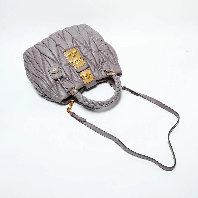 新品~未使用品 新品同様品または試着程度の使用感があります。 使用感の少ない状態の良い中古品になります。 使用感があるものの傷や汚れが少なく、比較的状態の良い商品。 傷や汚れがあり、使用感のある商品。 Miu Miu/ミュウ ミュウ ハンドバッグ グレー そこに汚れあり モニターの発色によって実際の物と色が異なる場合がございます。