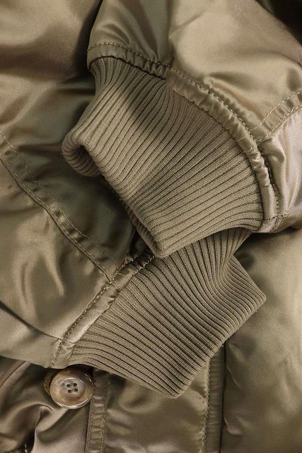 素材:(表地) ナイロン (裏地) ポリエステル55%、レーヨン45% (中綿) ポリエステル (リブ) ナイロン84%、ポリエステル14%、ポリウレタン2% (ファー) モダクリル64%、ポリエステル28%、アクリル8%