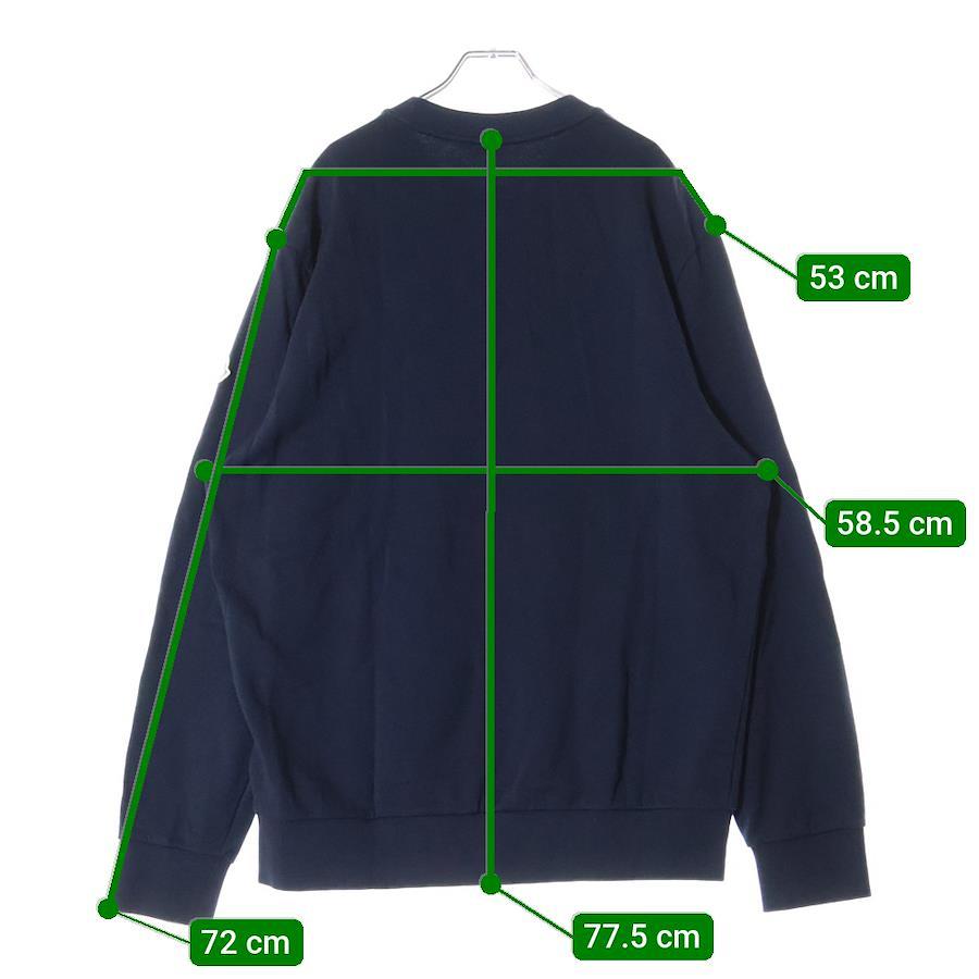 ■商品情報[商品番号]9225H250066[ブランド]MONCLER(モンクレール)[モデル]フロント ロゴ刺繍 スウェットトレーナー ネイビー I20918G00009[サイズ]着丈:77.5センチ 身幅:58.5センチ 肩幅:53センチ 袖丈:72センチ表記サイズ:XXL■状態・コンディション[状態ランク]ランク B使用感有り前身頃ロゴワッペンに毛羽立ち有り全体的に毛羽立ち有り首周りに若干のヨレ有り