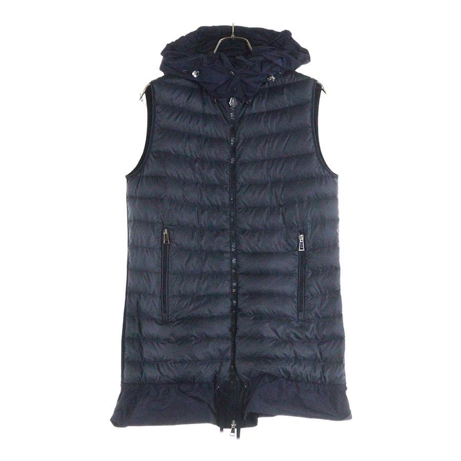 [モデル]18SS GILET 裾フリル 異素材切替 フーデッド ダウンベスト ネイビー レディース D10938452200 809AB