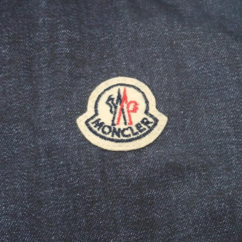 Pre-owned Moncler MONCLER CAPBRETON GIUBBOTTO denim print jacket, size 4, B1091410674553774, indigo nylon, men's, condition: AB.