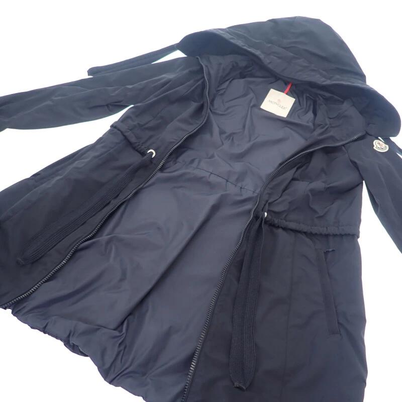 ポリエステル素材を使用した、ミディアム丈のフーデッドコート。ウエストにはドローストリングを備え、シルエットを自由に調整できるフェミニンなデザインが魅力。ネイビーカラーが上品さと洗練された都会的な印象を与え、タウンユースから旅行、オンオフを問わず活躍する一着。モンクレールならではのスポーティな機能性とエレガントなシルエットが共存した、季節の変わりめに最適なライトアウターです。