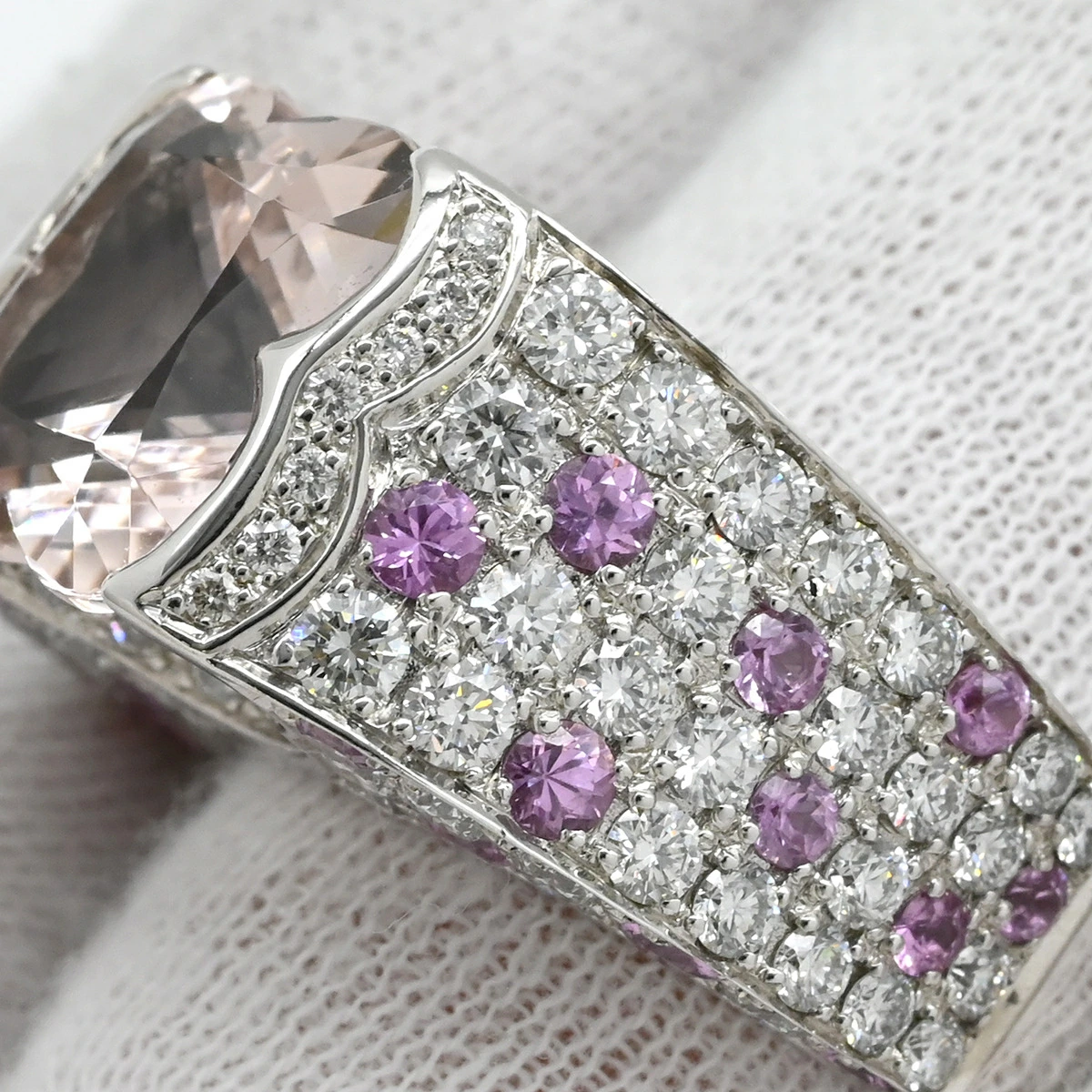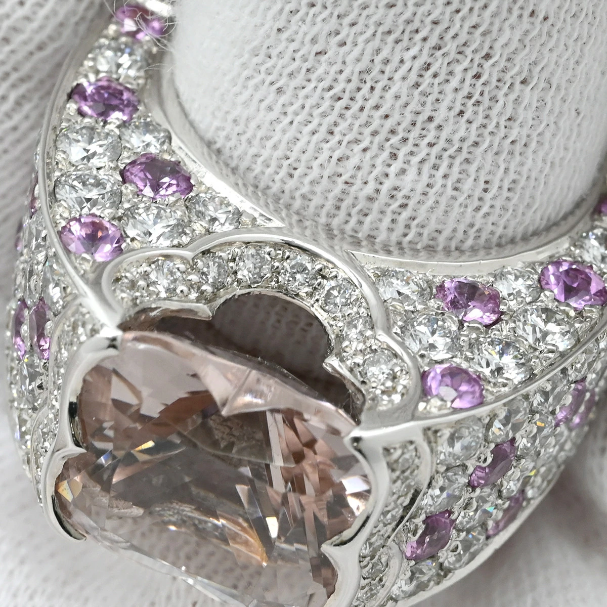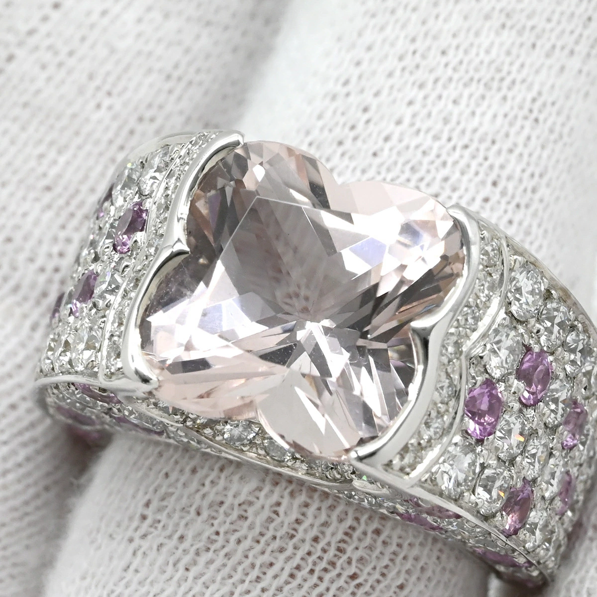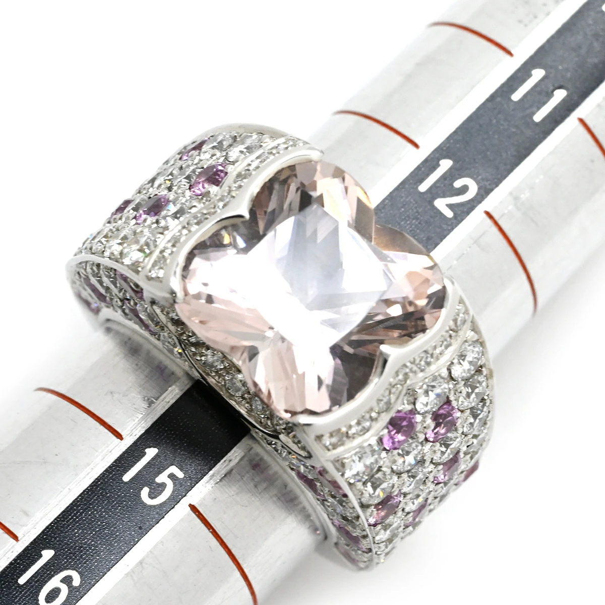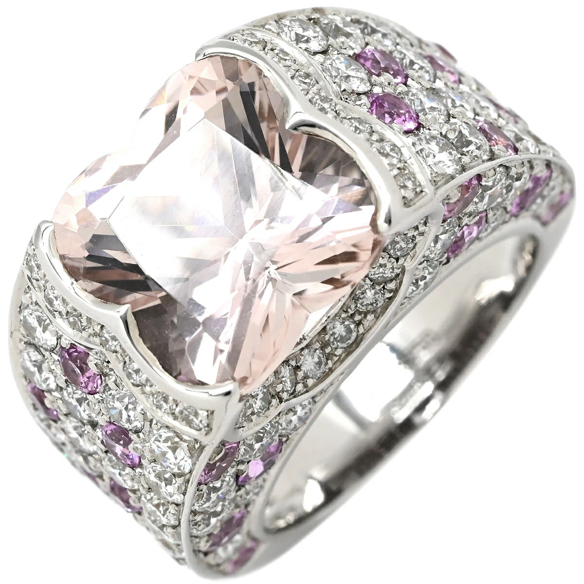 ▲クリックで拡大されますモーブッサン MAUBOUSSIN リング 指輪 モルガナイト ダイヤモンドリング K18WG モルガナイト ピンクサファイア ホワイトゴールド Mauboussin Au750 18K WG ピンクサファイア - 14号 #54 レディース定番 人気 美品 【中古】