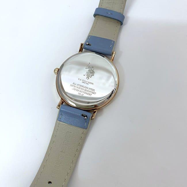 商品名:腕時計ブランド名:ユーエスポロ/USPOLOASSN商品ランク:Aランク素材:SSレザーサイズ:(約)風防直径:34mmケース(リューズ込):39mm腕周り内周:14cm~19cmベルト幅:17mm総重量:約31.1g/1.09oz型番・品番:-カラー:文字盤:シルバー、ベゼル・インデックス・針・バックル:ゴールド、ブレス:ライトブルームーブメント:クオーツ付属品:紙箱印刷物詳細説明:電池交換済み、動作確認済みです。箱に汚れがございますが、その他目立った使用感などはなく非常に綺麗です。保証・ご注意:時計の保証期間は商品到着日より3ヶ月間とさせて頂きます。使用した際の破損や水没したなどお客様都合による保証については、保証対象外となりますので、予めご了承下さい。 ※撮影時の環境によって、実物と写真で多少色合い等に違いがある場合がありますので、予めご了承下さい。※管理ナンバー:f-21643no,320225241127