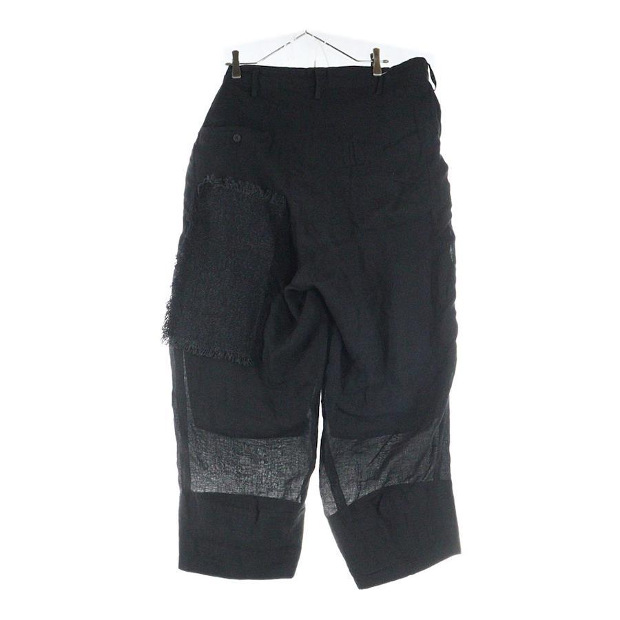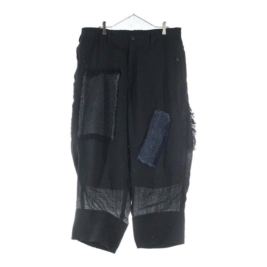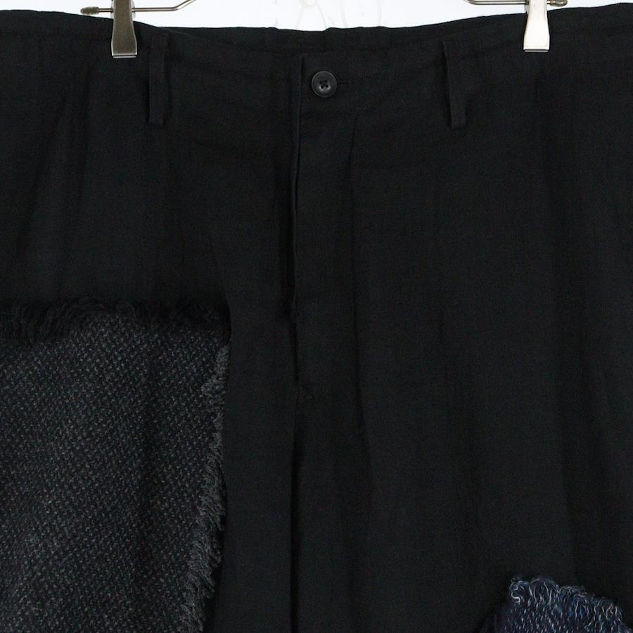 [モデル]23SS リネンツイードパッチワークパンツ ブラック HZ-P92-334