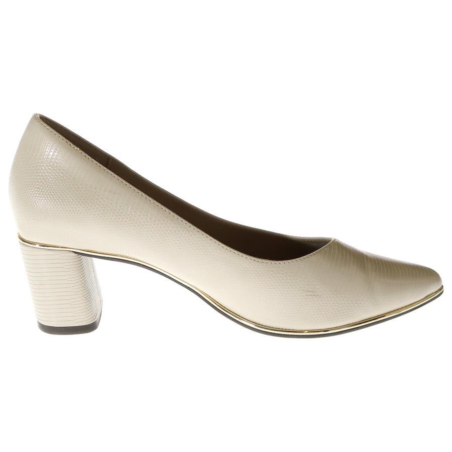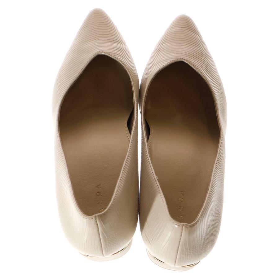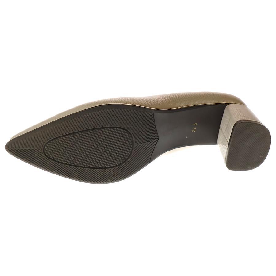 [モデル]クロコ型押し エンボスレザー ヒール パンプス シューズ ベージュ レディース〇