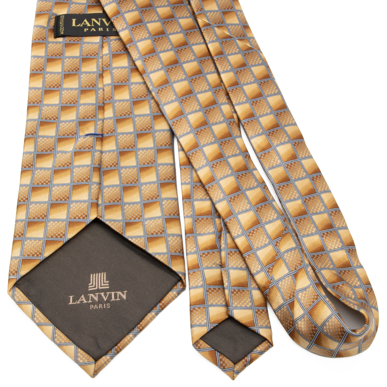Lanvin 領帶,常規印花,全新,男女真絲,棕色,米色,灰藍色,商務,休閒,全印花,方形,漸變色,亮面,品牌,稀有,時尚,法國製造,漂亮,P322