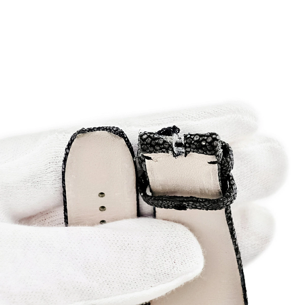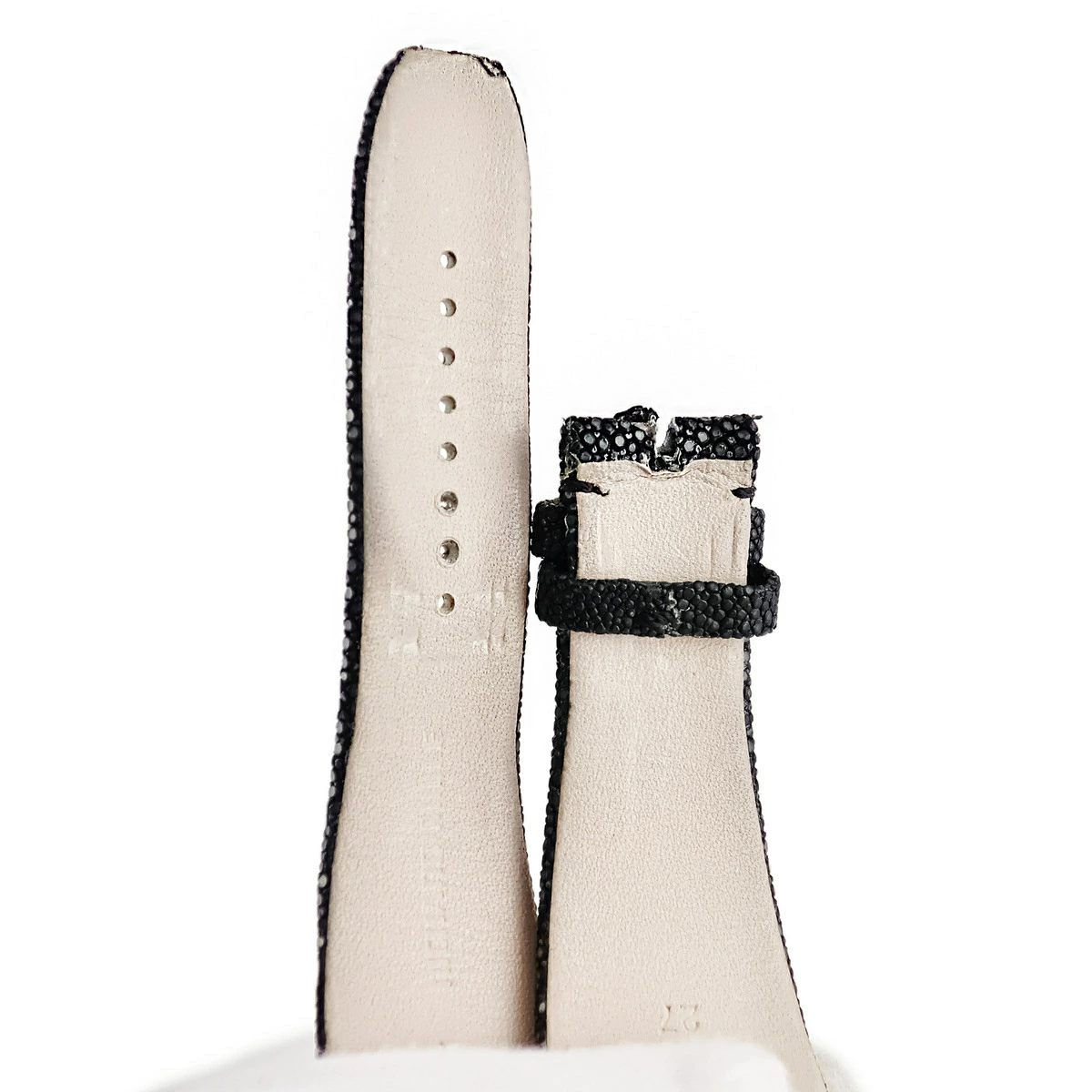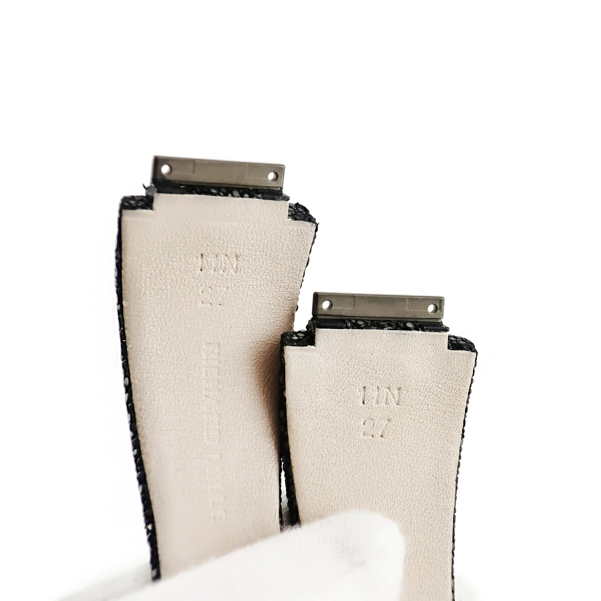 ▲クリックで拡大されますリシャール・ミル RICHARD MILLE 腕時計パーツ 純正 本革 ブラック ガルーシャ エイ革 本革 レザー 替え ベルト ストラップ 予備 スペア 交換 パーツ 27mm ブラック 黒 - メンズ 【中古】