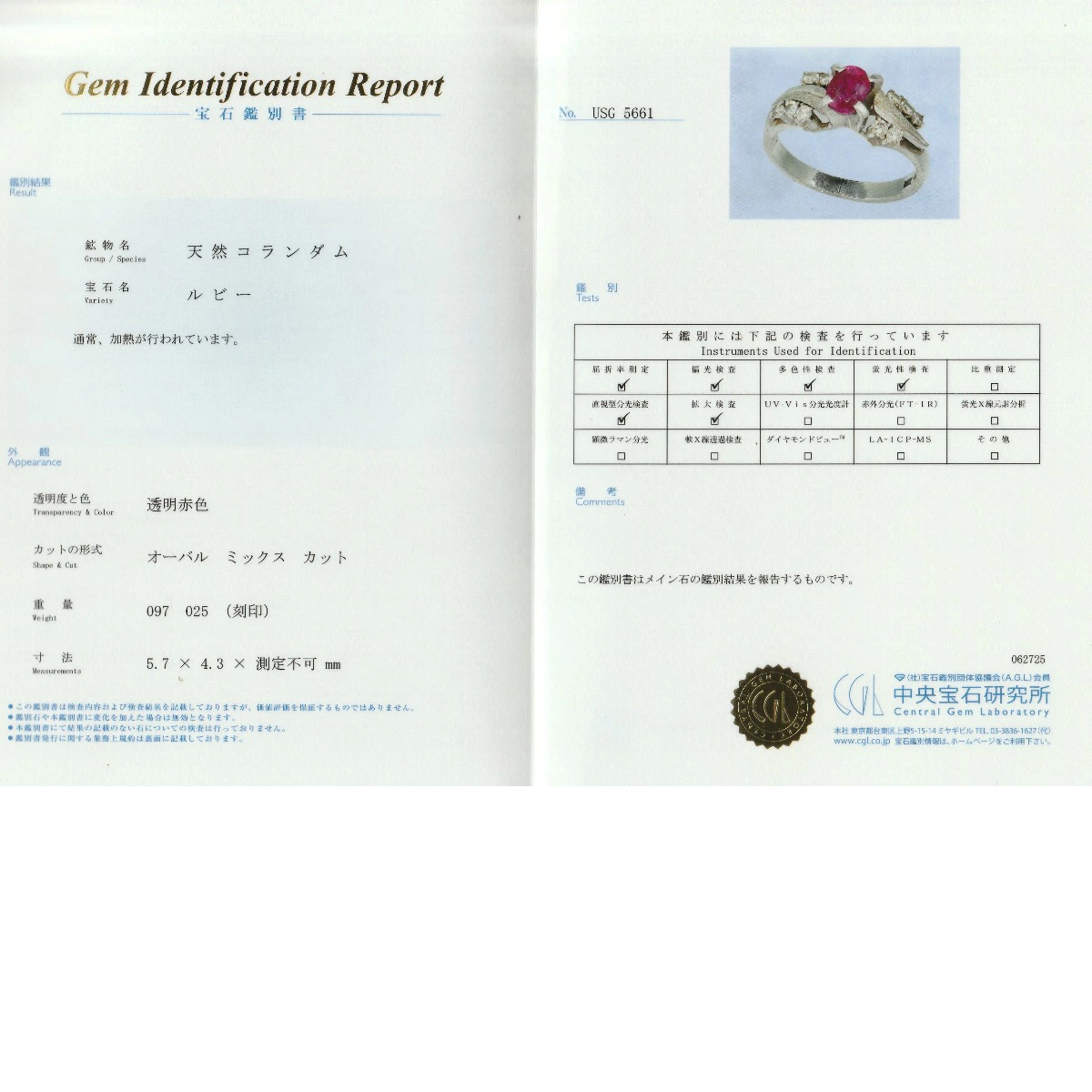 | 付属品 | 鑑別書 |