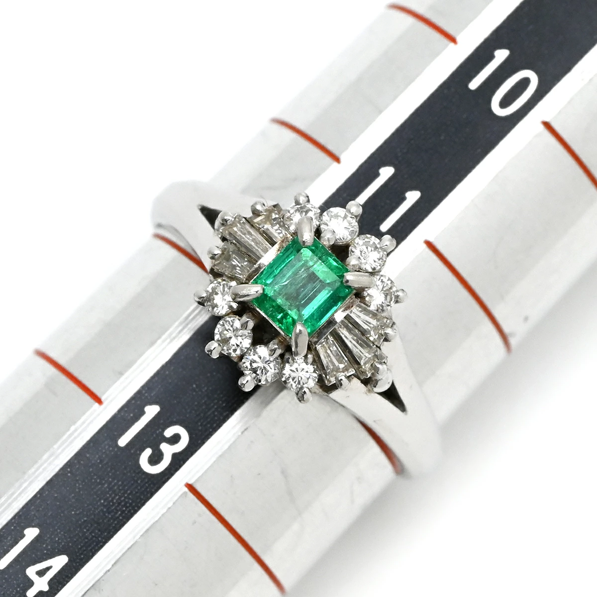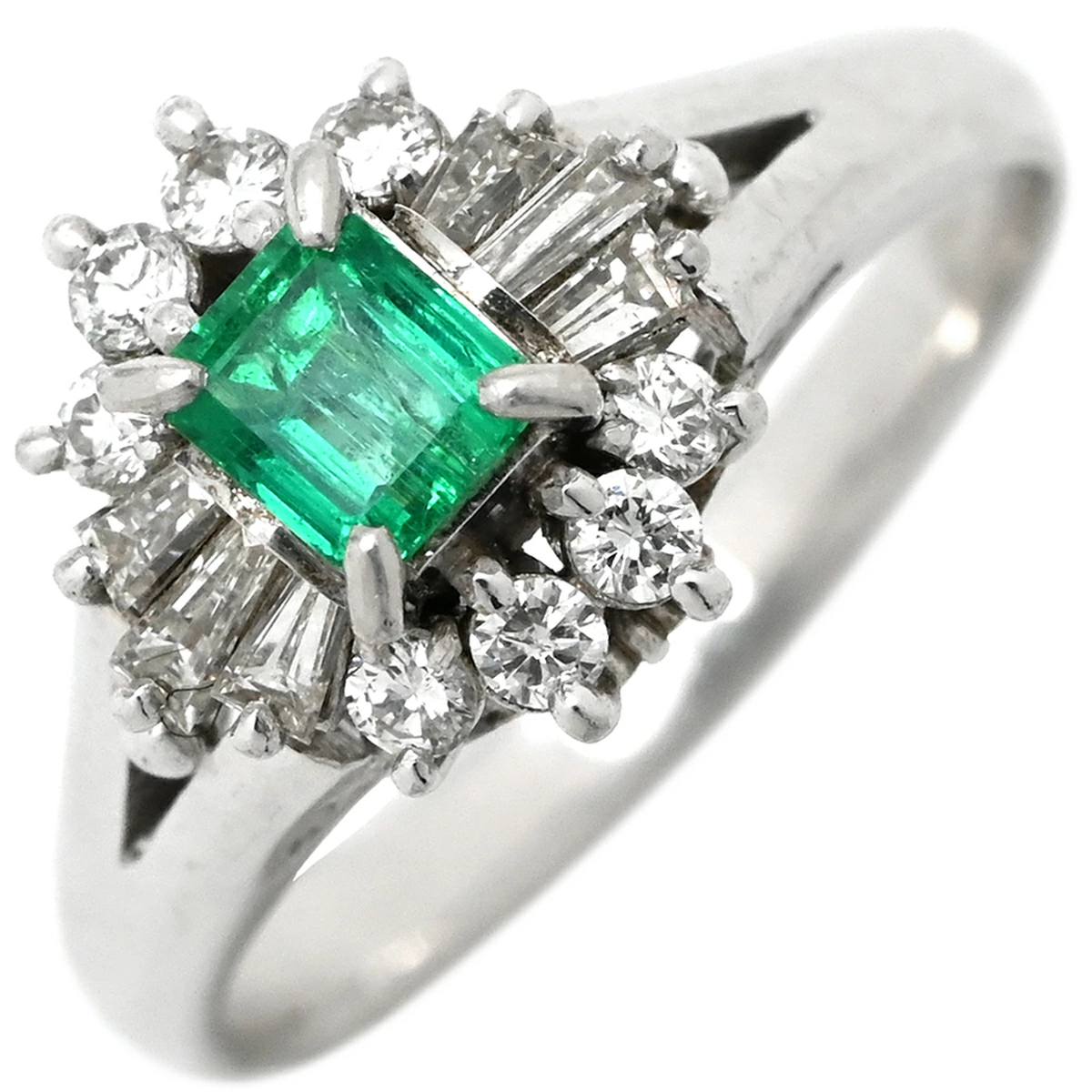 ▲クリックで拡大されますノンブランド NON BRAND リング 指輪 エメラルド ダイヤモンド リング Pt900 エメラルド ダイヤモンド プラチナシルバー グリーン 緑 スクエア - 12号 レディース定番 人気 美品 【中古】