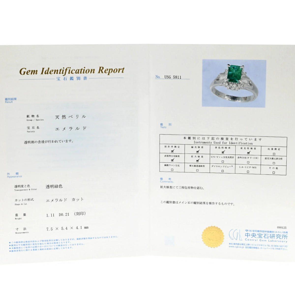 | 石目 | エメラルド1.11ct ダイヤモンド0.21ct