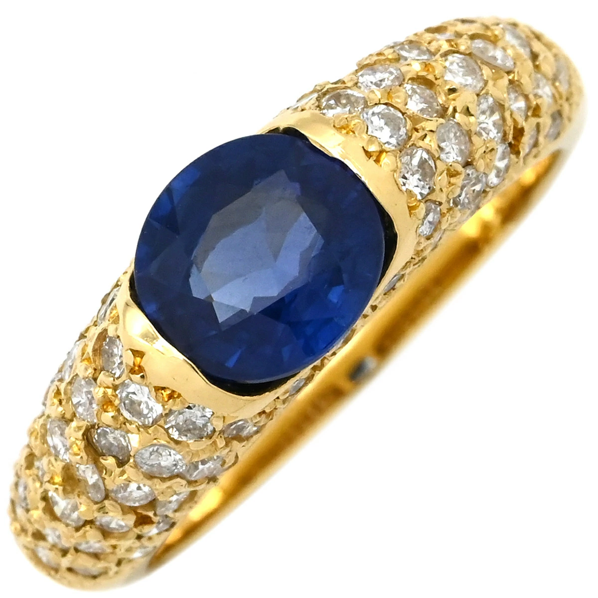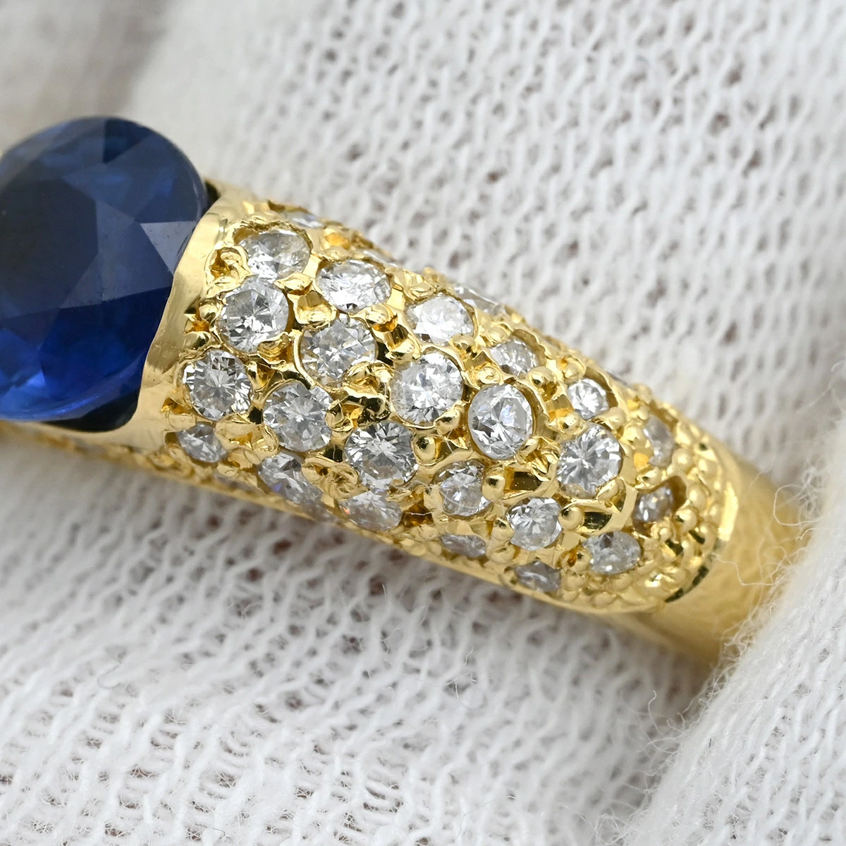 ▲クリックで拡大されますノンブランド NON BRAND リング 指輪 サファイア ダイヤリング K18YG サファイア ダイヤモンド イエローゴールド 青 12号 レディース定番 人気 美品 【中古】
