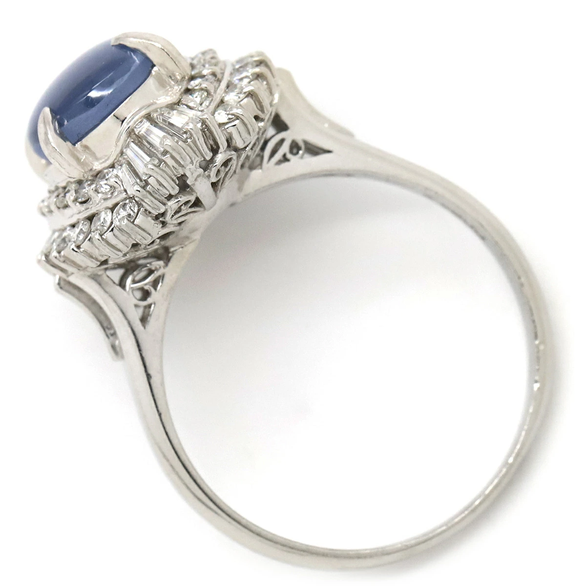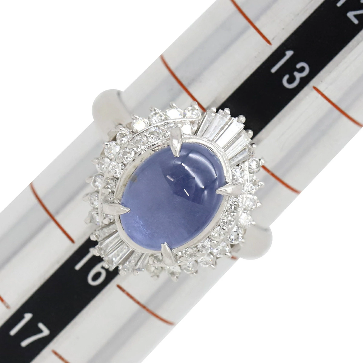 ▲クリックで拡大されますノンブランド NON BRAND リング 指輪 スターサファイア ダイヤリング Pt900 サファイア プラチナシルバー ブルー 青 15号 レディース定番 人気 美品 【中古】