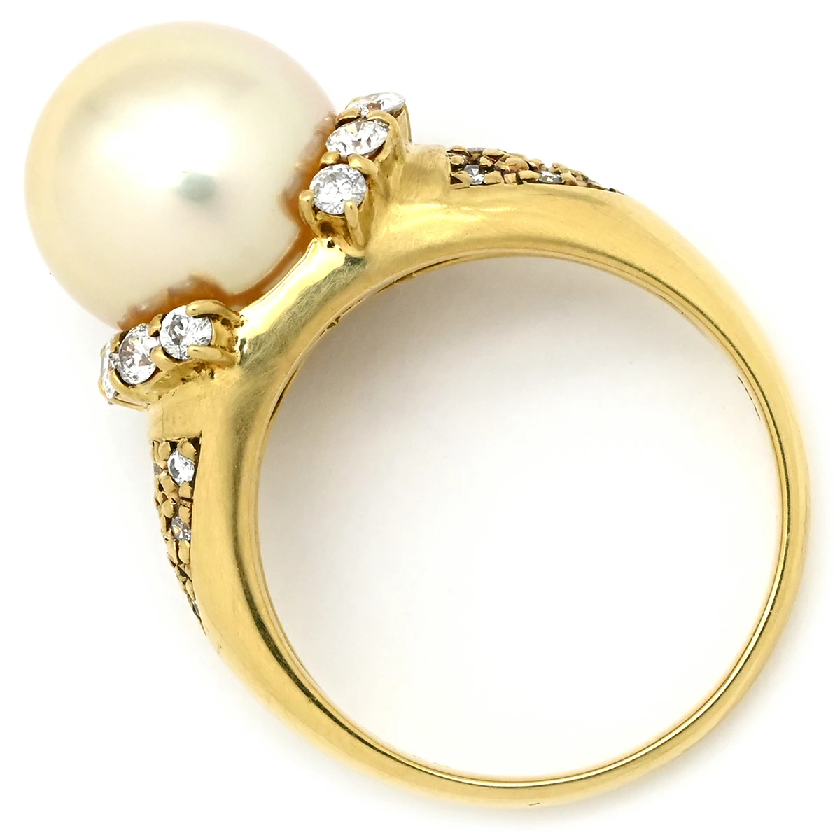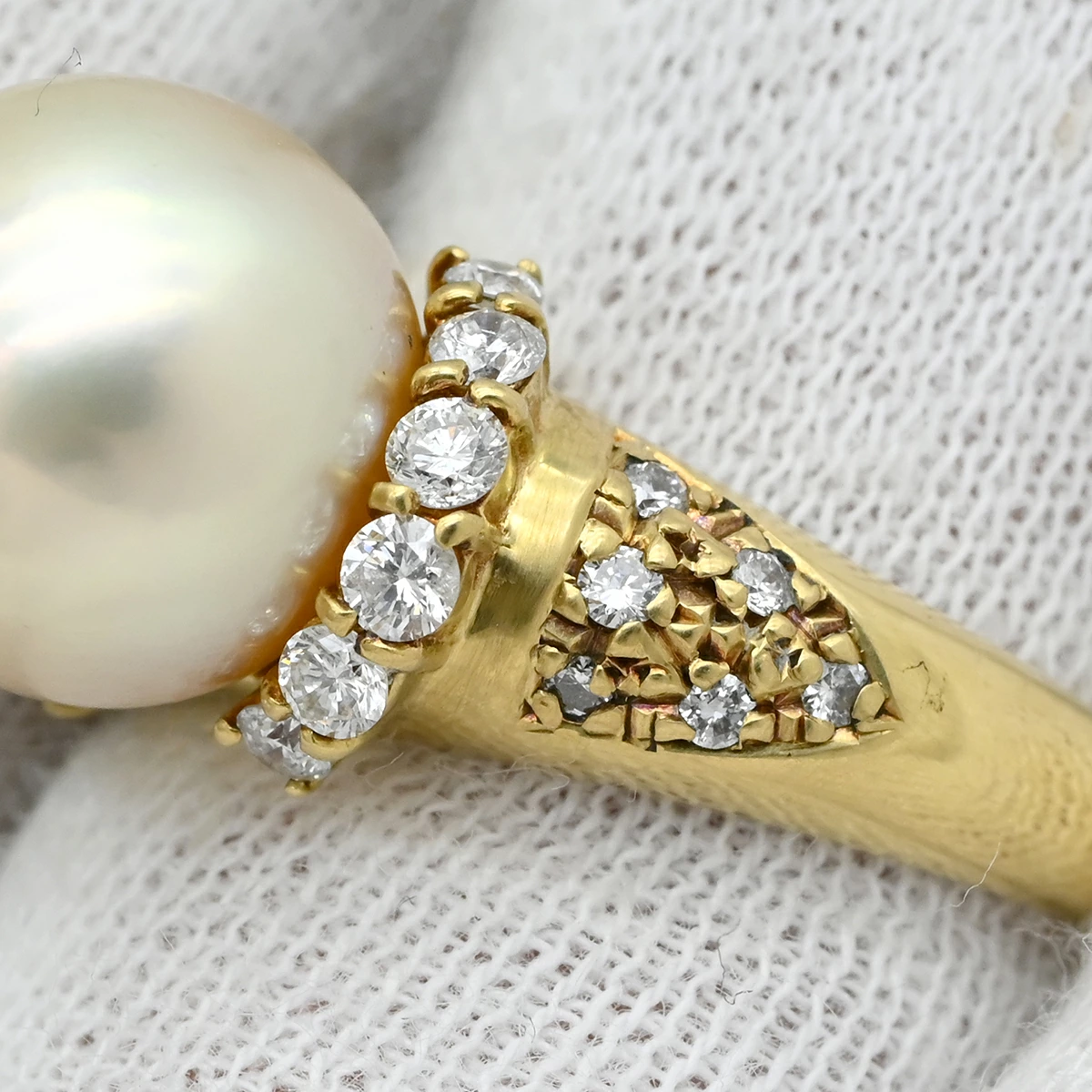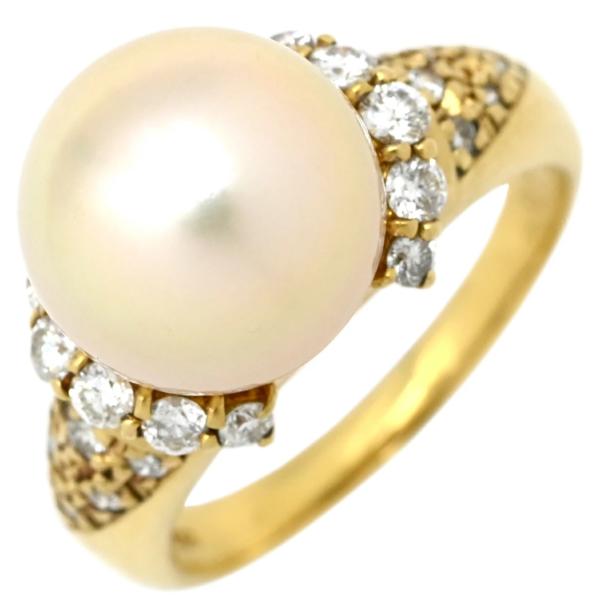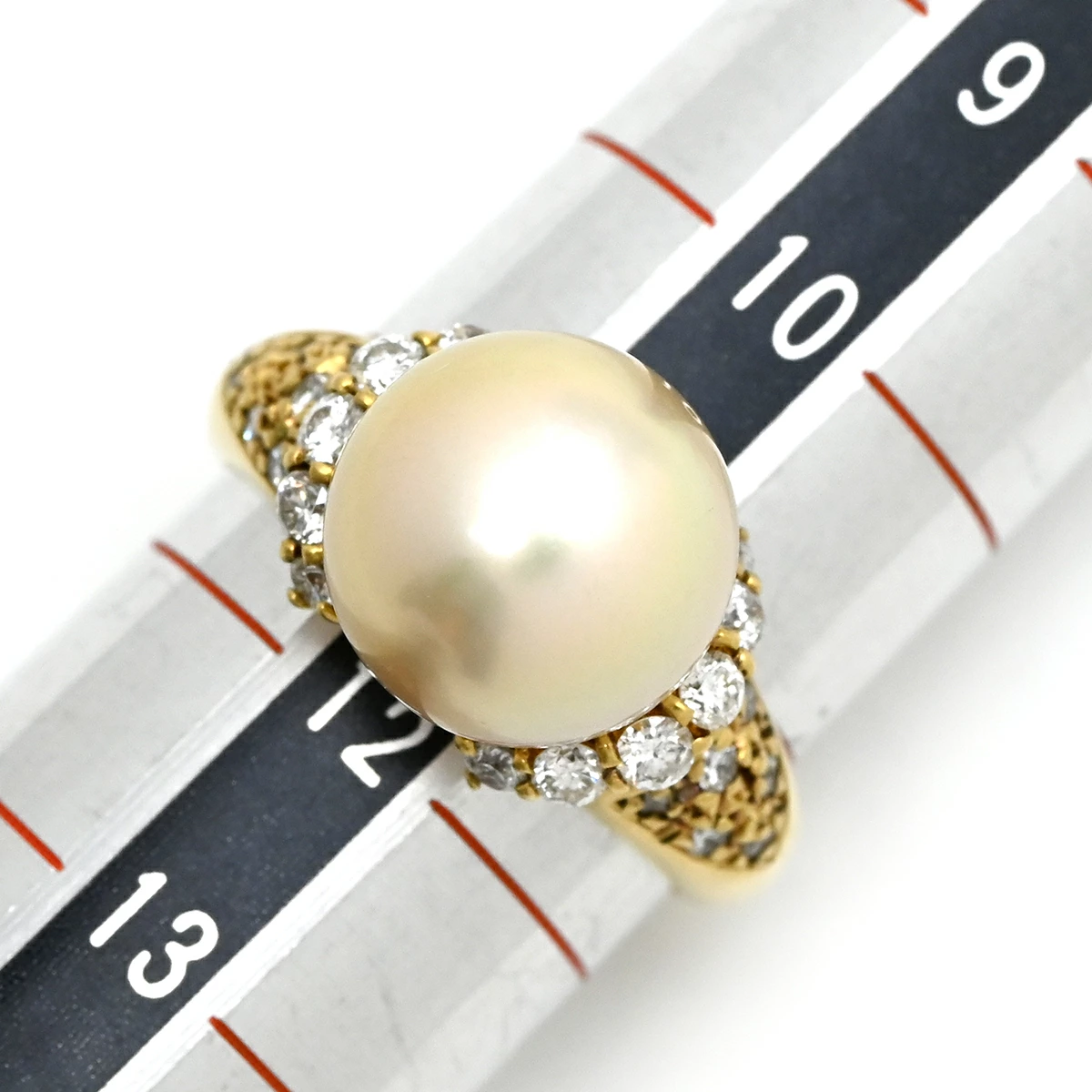▲クリックで拡大されますノンブランド NON BRAND リング 指輪 パール ダイヤ リング K18YG パール ダイヤモンド イエローゴールド 1P 1粒 真珠 18K 18金 YG ダイヤモンド ゴールデンパール - 11号 レディース定番 人気 美品 【中古】