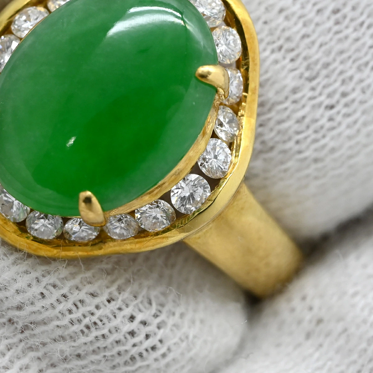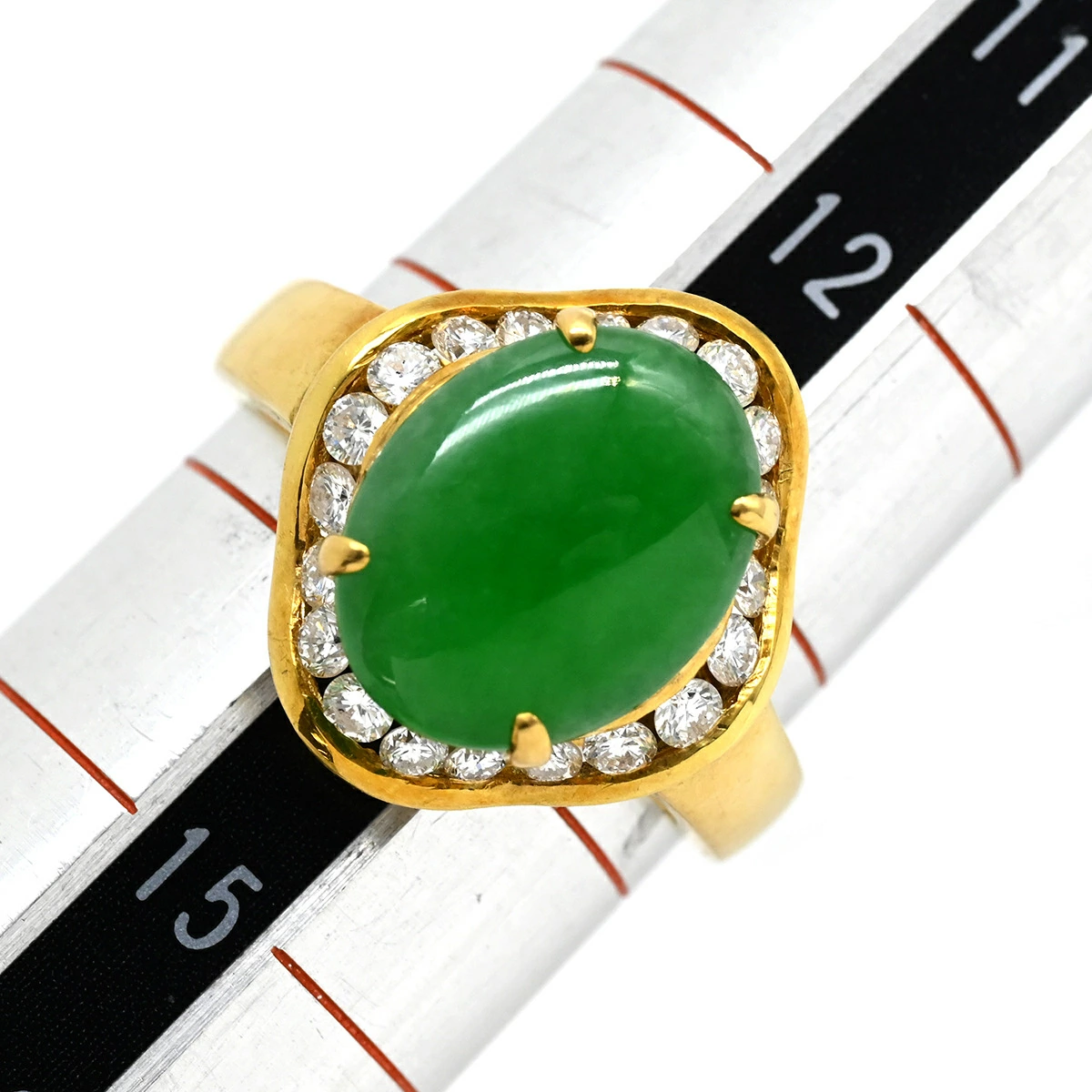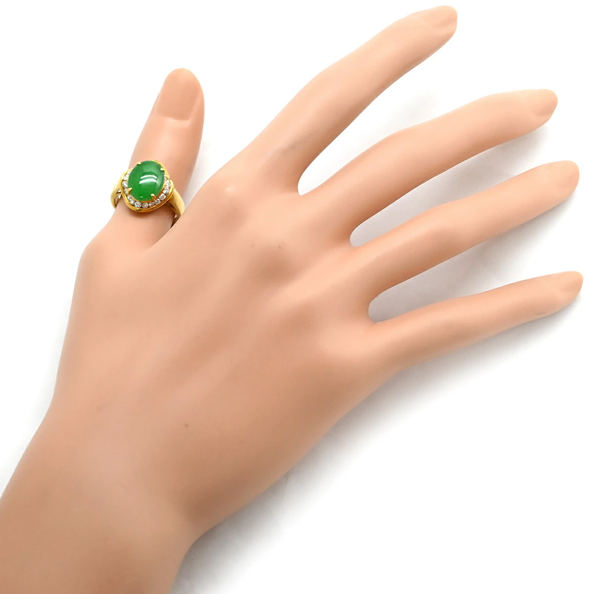 ノンブランド NON BRAND リング 指輪 ヒスイ ダイヤリング K18YG ヒスイ ダイヤモンド イエローゴールド 翡翠 グリーン 緑 カボションカット - 13.5号 レディース 【中古】 管理コード240500513119 全体コンディション詳細: ご使用や保管により全体的に多少のダメージが見受けられるお品です。※画像、コメント欄参照 コンディション詳細:中古品 細かな擦れや小傷、くすみがございます。