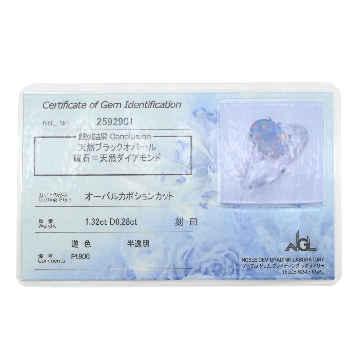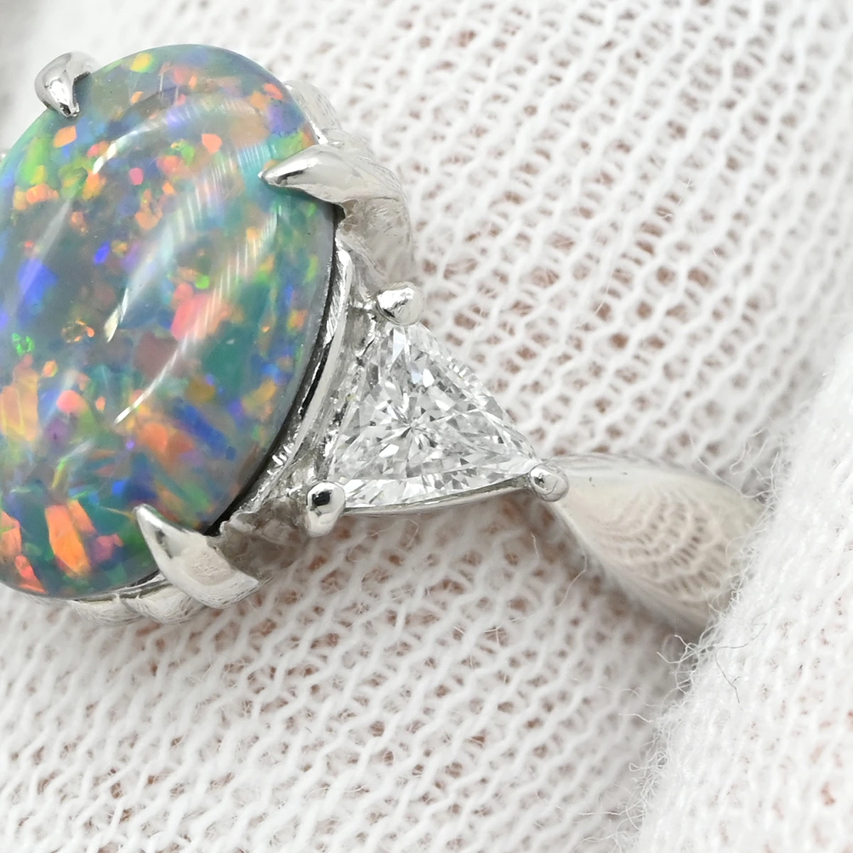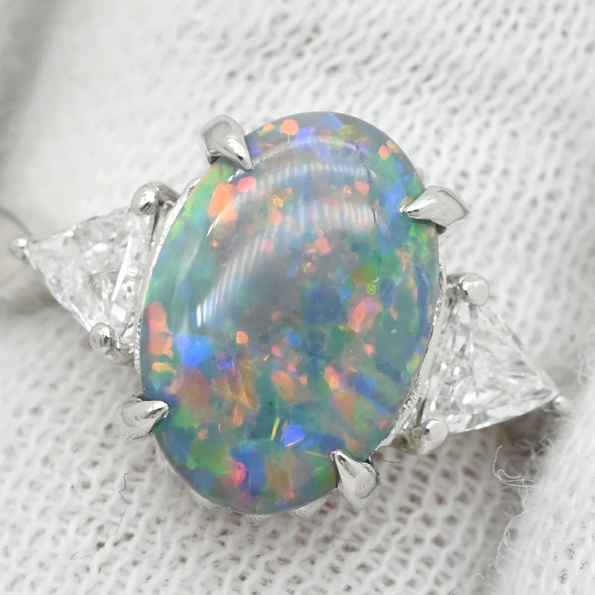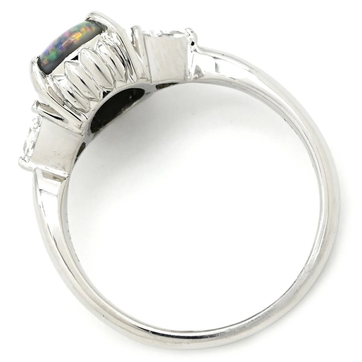 ノンブランド NON BRAND リング 指輪 ブラックオパール 1.3ct ダイヤリング Pt900 オパール ダイヤモンド プラチナシルバー オーバルカボションカット 1石 1粒 マルチカラー 遊色 - 13.5号 レディース定番 人気 美品 【中古】