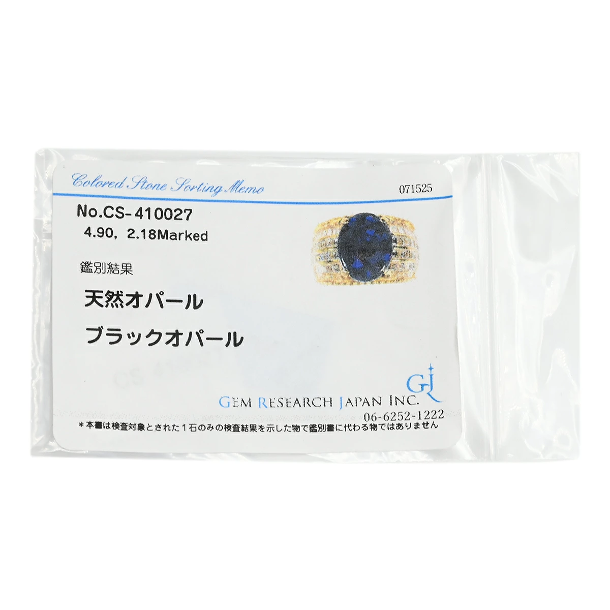▲クリックで拡大されますノンブランド NON BRAND リング 指輪 ブラックオパール 4.9ct ダイヤモンド K18YG オパール ダイヤモンド イエローゴールド 黒 遊色 オーバル 1石 1粒 マルチカラー 18K 750 YG - 13号 レディース 【中古】