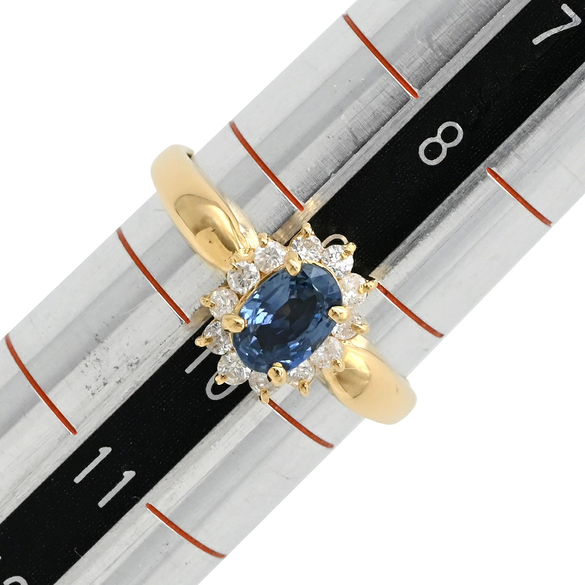 ▲クリックで拡大されますノンブランド NON BRAND リング 指輪 ブルーサファイア ダイヤ K18YG サファイア ダイヤモンド イエローゴールド 青 9.5号 レディース定番 人気 美品 【中古】