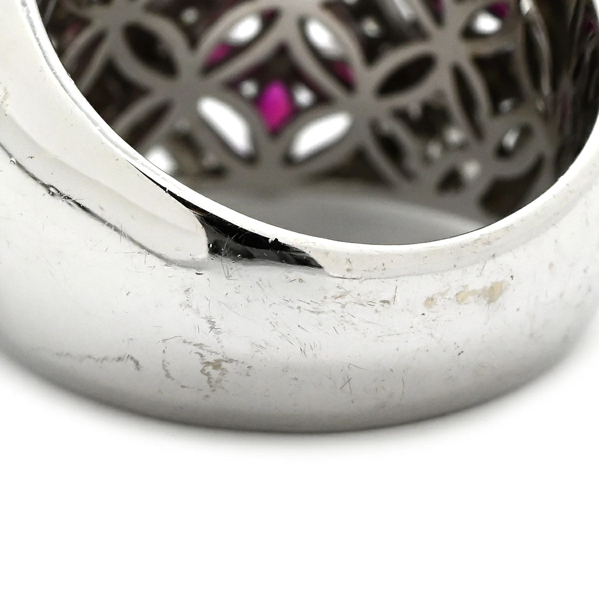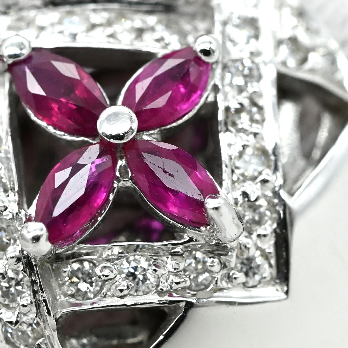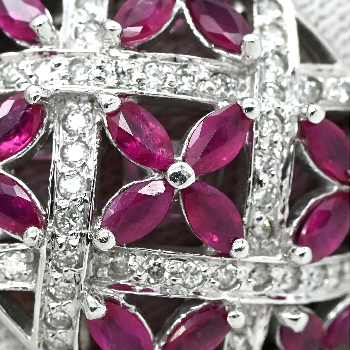 ▲クリックで拡大されますノンブランド NON BRAND リング 指輪 ラティス ダイヤリング K14WG ダイヤモンド ルビー ホワイトゴールド WG 14K ダイヤモンド ルビー フラワークラスター - 16号 レディース 【中古】