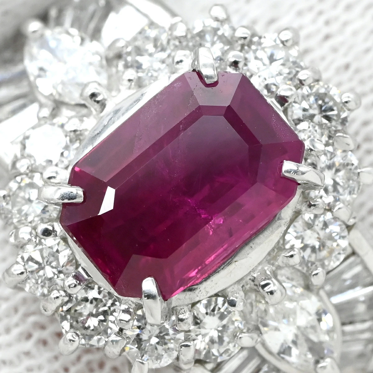▲クリックで拡大されますノンブランド NON BRAND リング 指輪 ルビー ダイヤリング Pt900 ルビー ダイヤモンド プラチナシルバー レッド 赤 1石 ダイヤモンド 1.59ct プラチナム PT 長方形 10号 レディース 【中古】