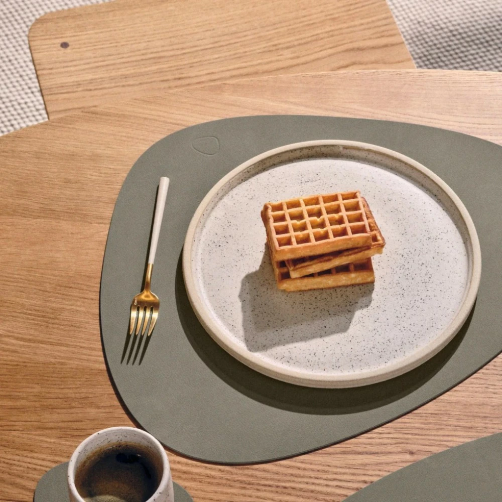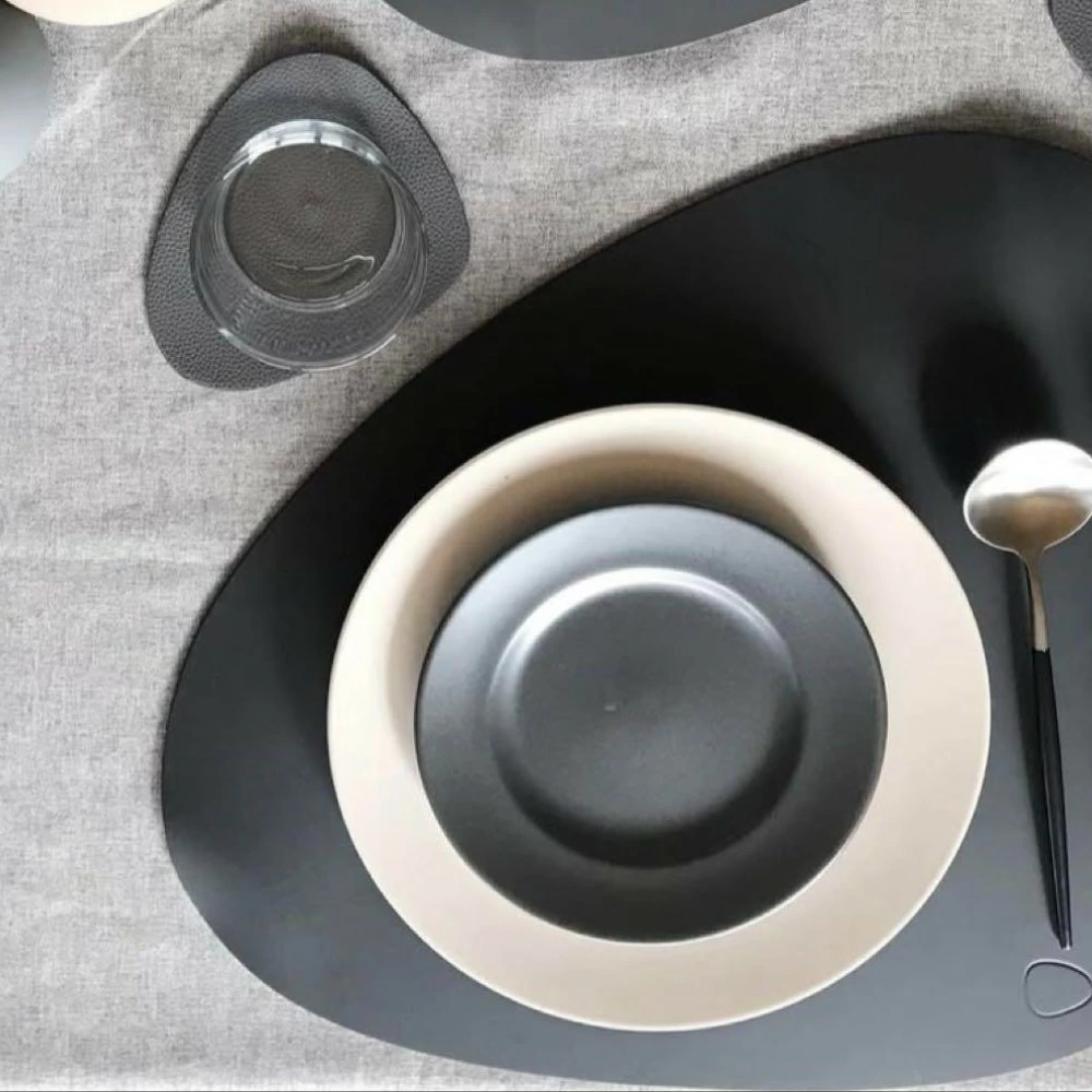 プレイスマット、コースター、フラワーベースカバーはリサイクルレザーを使う事により革の高級感と暮らしの中での使いやすさを両立。
