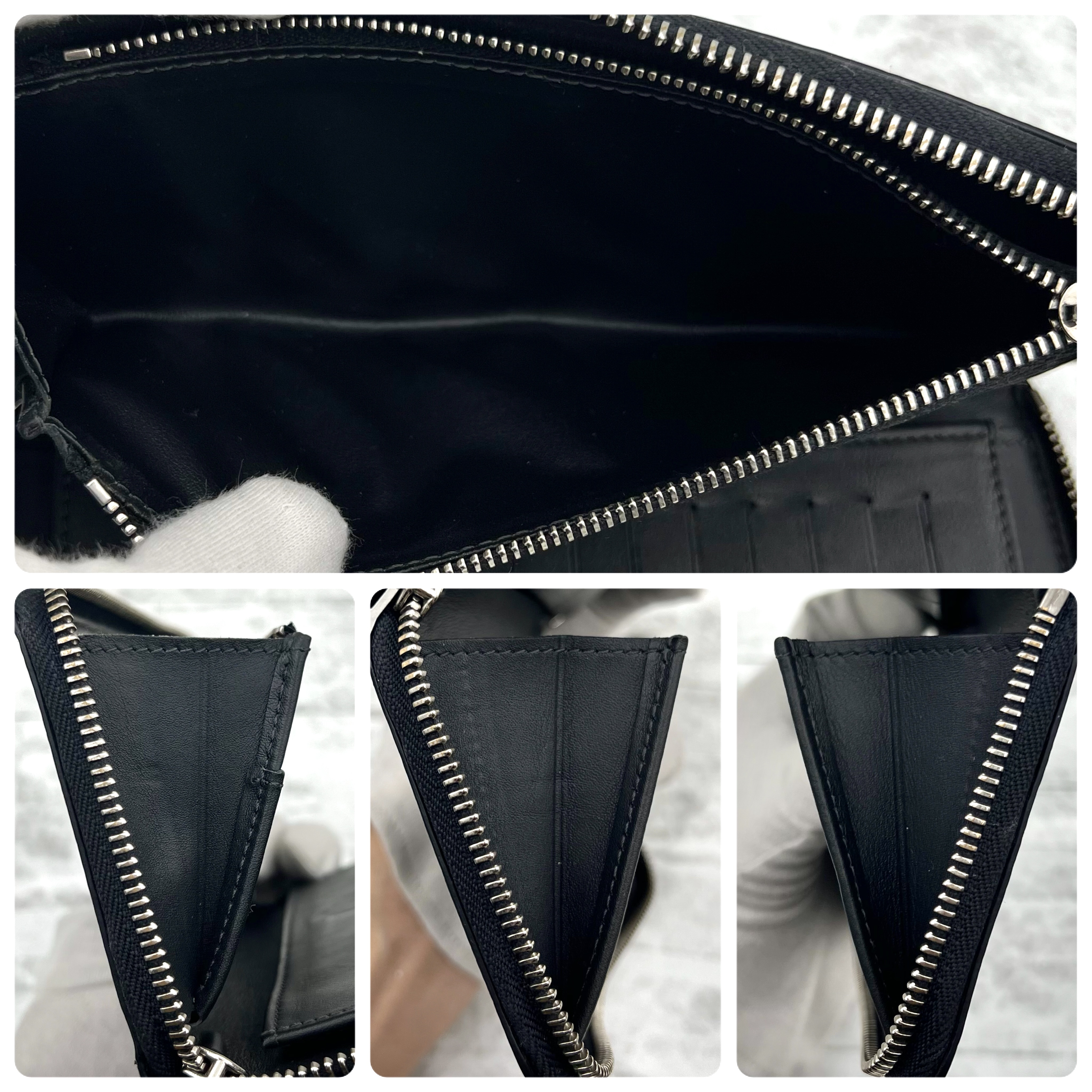 ・内側は、イニシャルの消し跡、ごくごくわずかにスレ、型崩れ、カードポケットに使用感はございますが、目立ったダメージは無く大変綺麗です