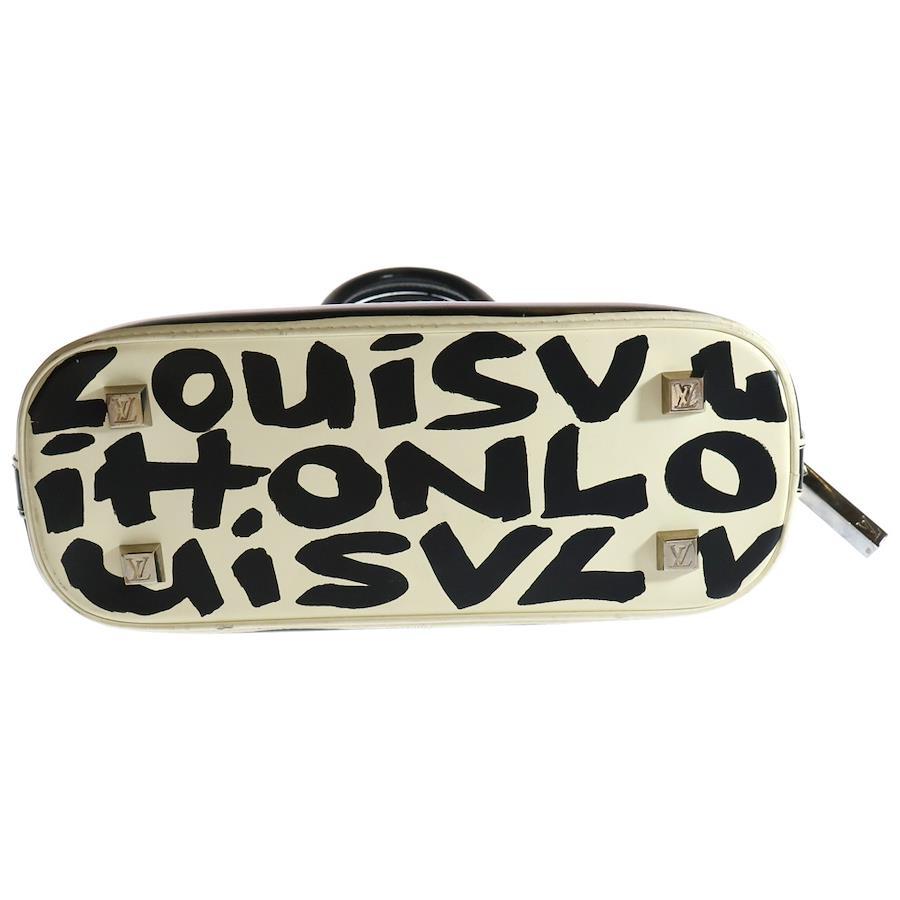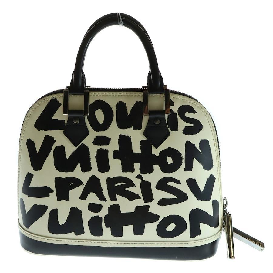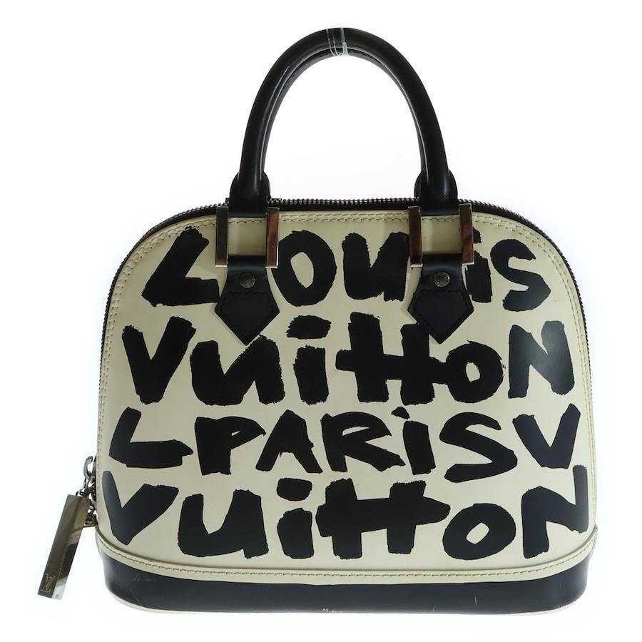 [モデル]アルマMM グラフィティ レザー ハンドバッグ シルバー金具 ホワイト/ブラック M92179
