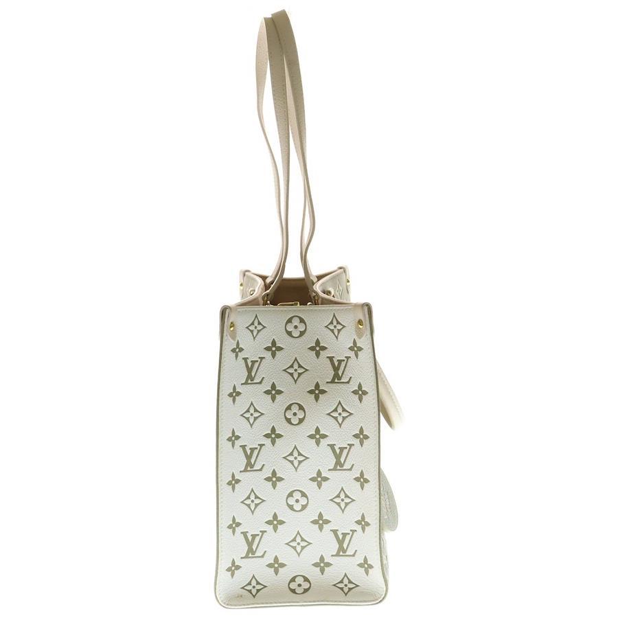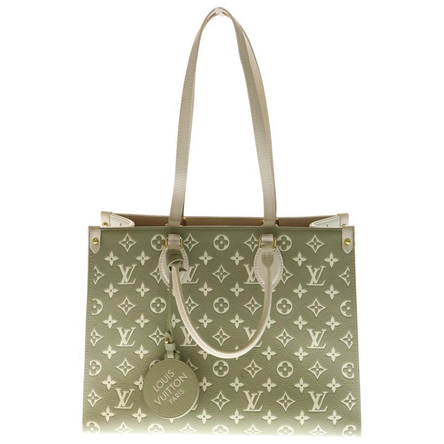 [モデル]オンザゴーMM モノグラム アンプラント バイカラー レザー 2WAY ハンド ショルダー トートバッグ ゴールド金具 カーキ/ベージュ M46060