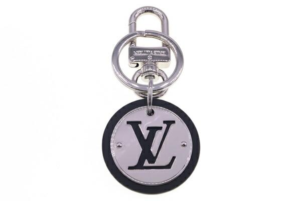 ルイヴィトンキーホルダーポルトクレLVサークルM67362シルバーブラックメタルレザー中古キーホルダーキーリングカギ鍵バッグアクセサリーメンズLOUISVUITTON