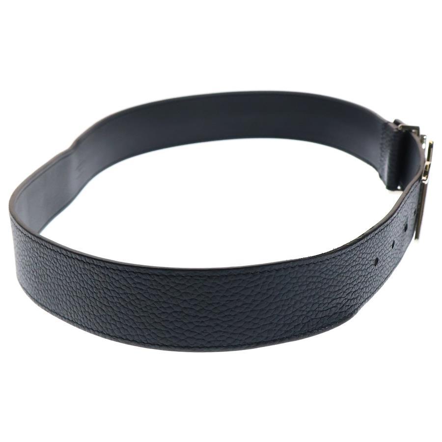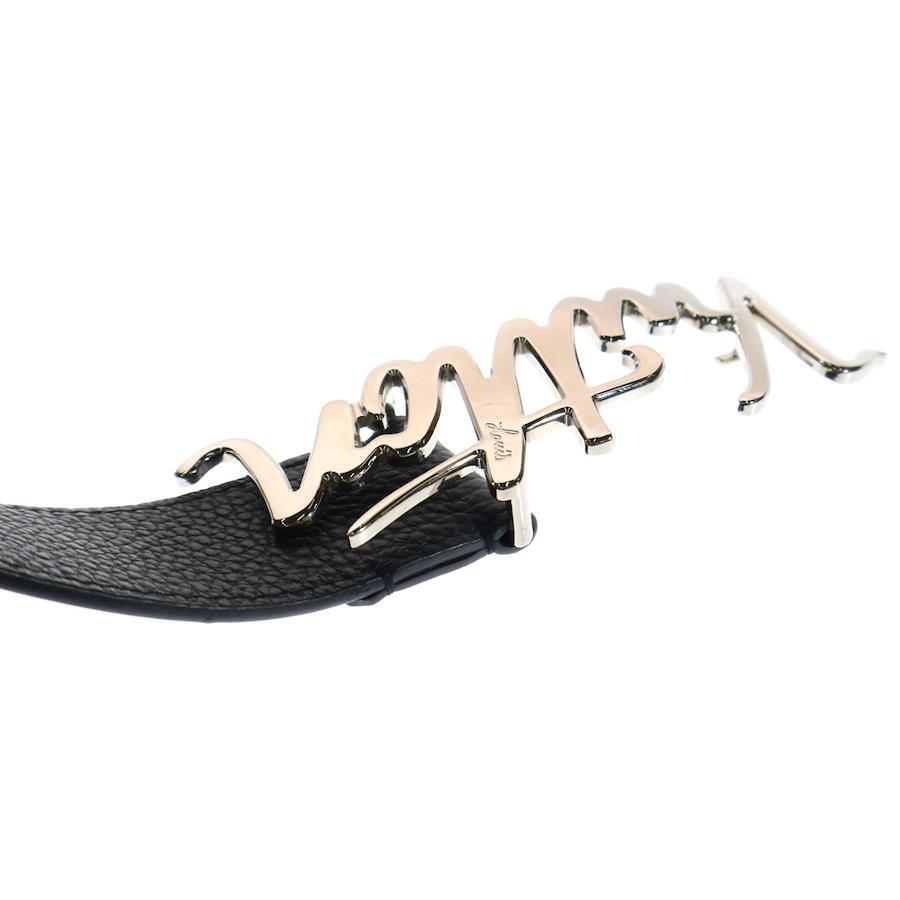 [モデル]サンチュール LVオートグラフ ロゴバックル レザー ベルト ブラック/シルバー M0187