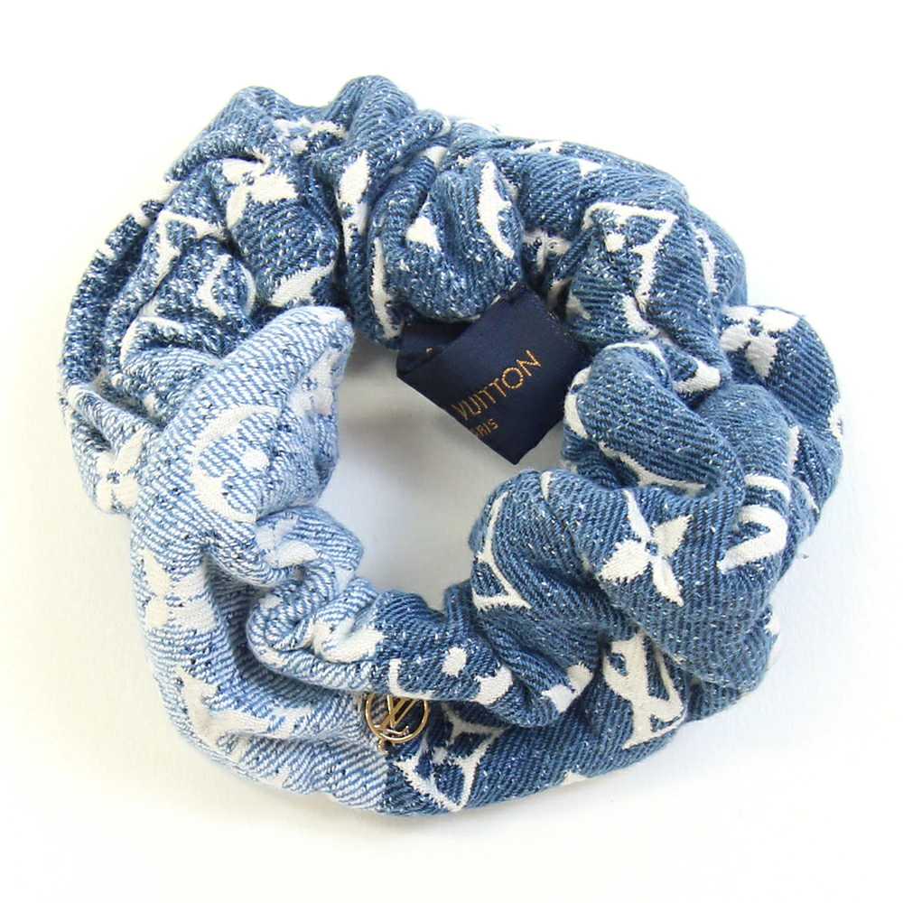 Pre-owned Louis Vuitton Scrunchie M77439 Blue 100% Cotton Hair Accessory Hair Clip Monogram Denim LV Logo Women's LOUIS VUITTON