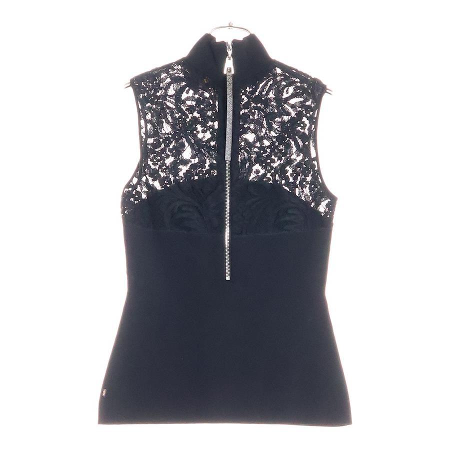 [モデル]シースルーモノグラムジップノースリーブト ップ FJKW95ZIC ブラック レディース