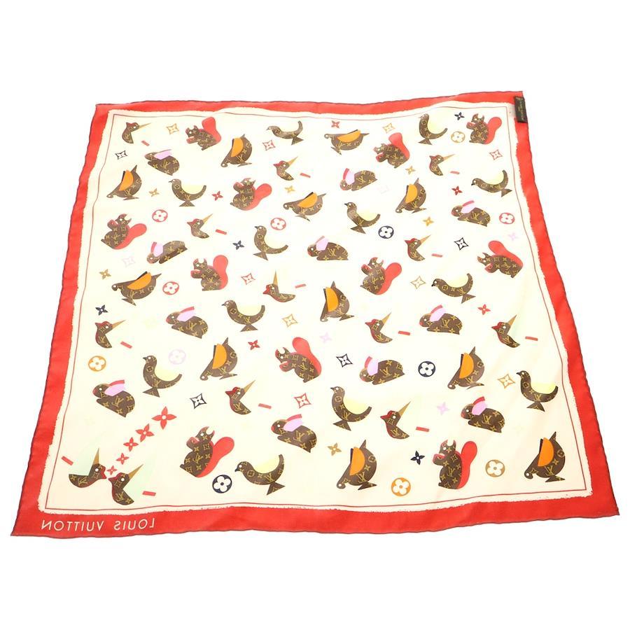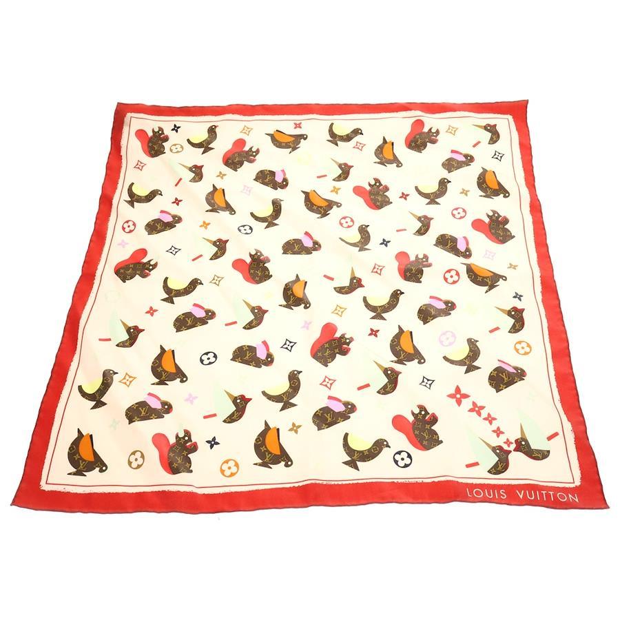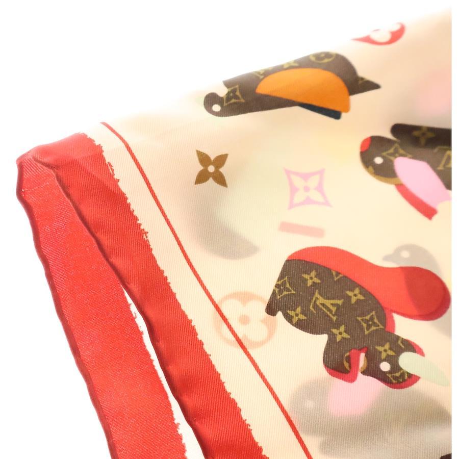 [モデル]スカーフ アニマル柄 マルチカラー ピンク×レッド シルク